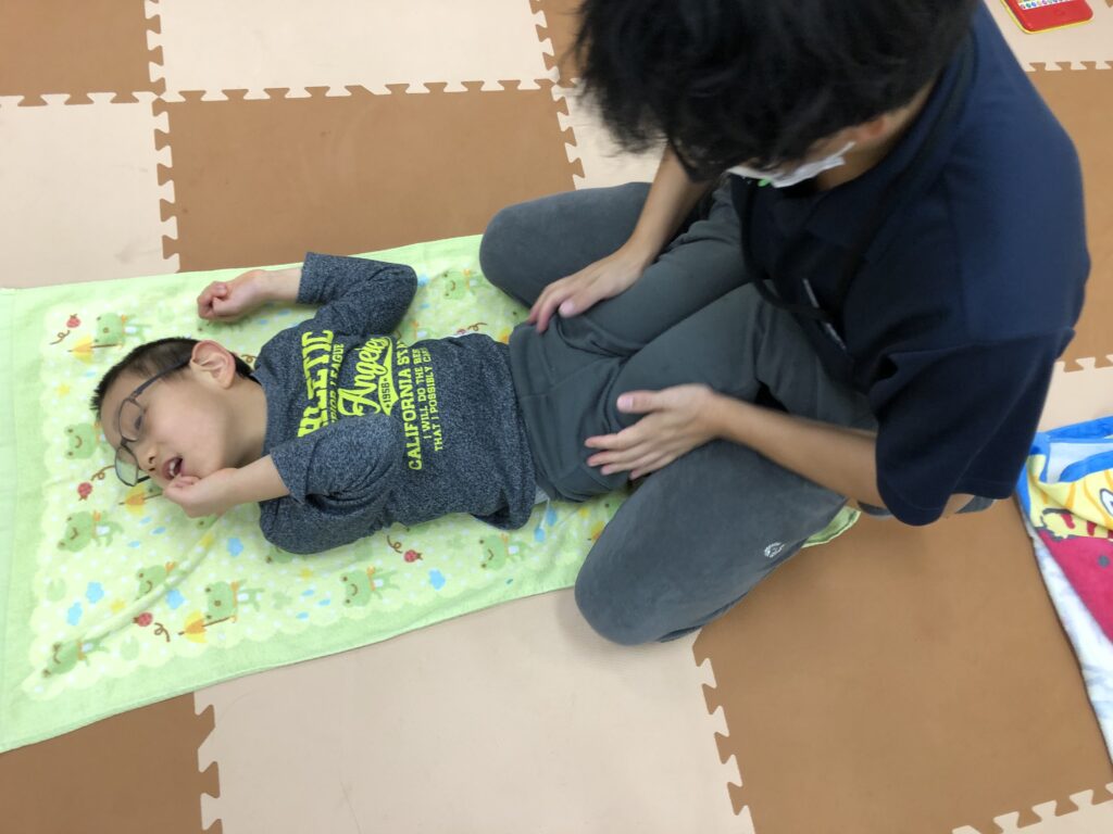 マッサージやストレッチ、遊びの中での訓練など、子どもたち一人ひとりに合わせて実施!!