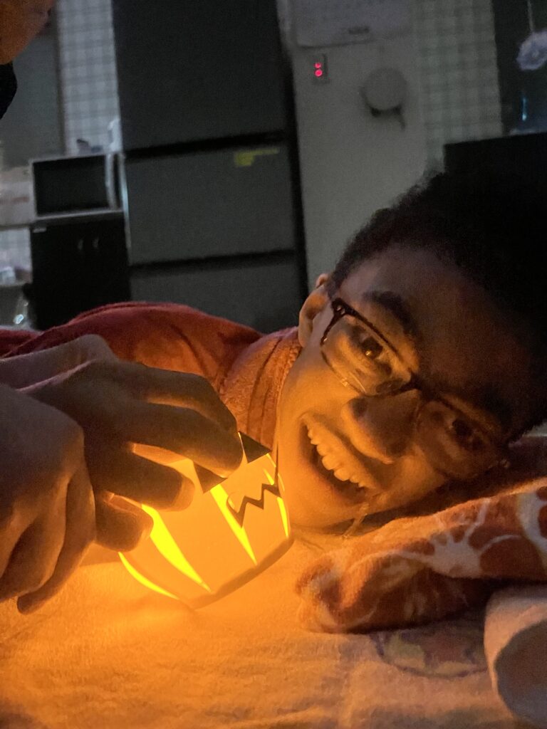 スヌーズレンも、ハロウィンらしくジャックオランタンを光らせてみました!