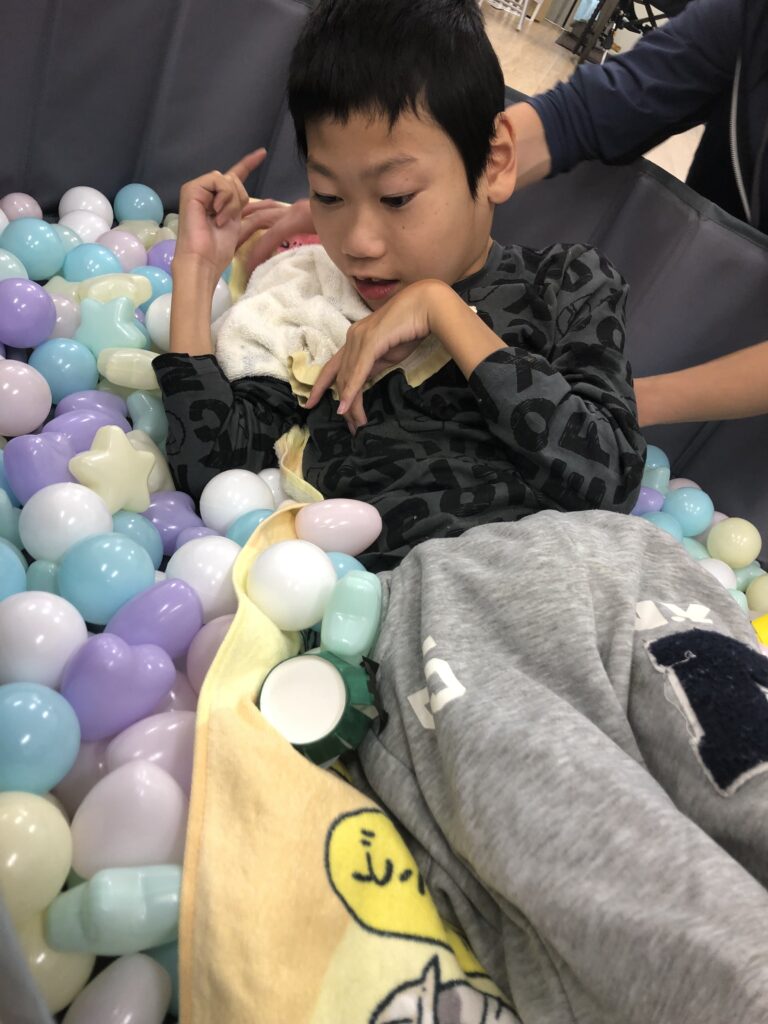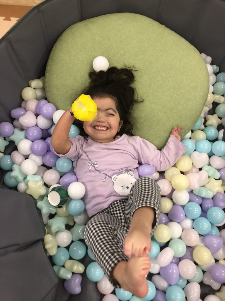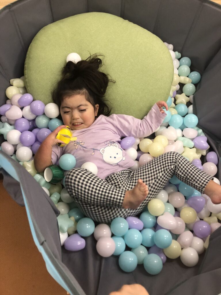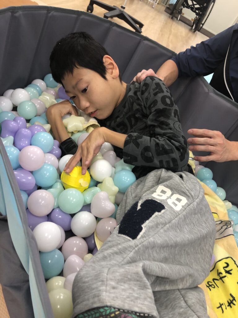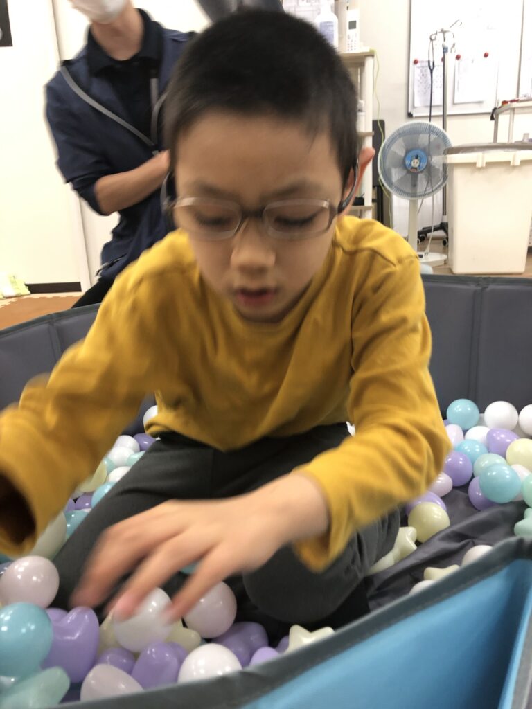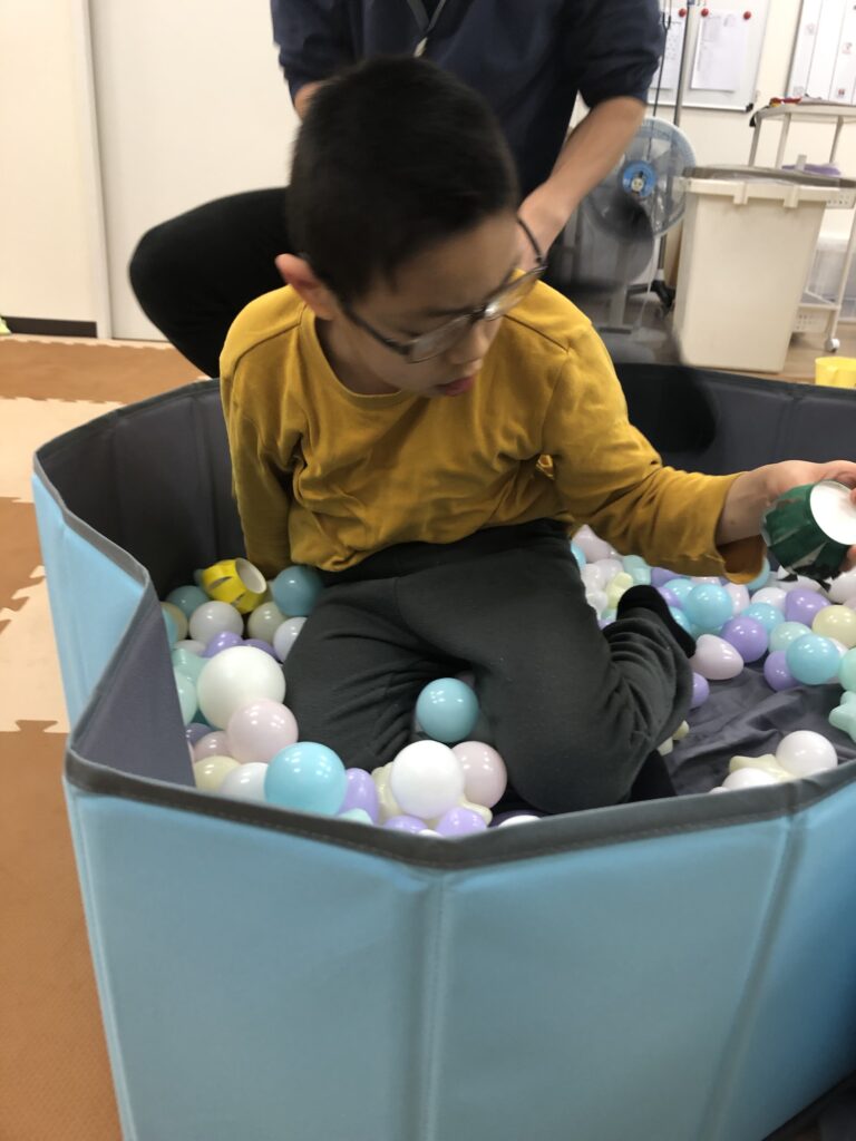 ※余談なのですが、「砂遊びが苦手」というお子さんにボールプールが有効な支援として取り入れられることがあります。苦手の理由として触覚よりも先に痛覚が反応してしまって砂に触りたくなくなっている可能性があるようです。痛覚は面よりも点の方が感じられやすく、ボールプールであれば1個当たりの皮膚に当たる面積が広いため、痛覚より先に触覚への刺激を感じ取ることができます。