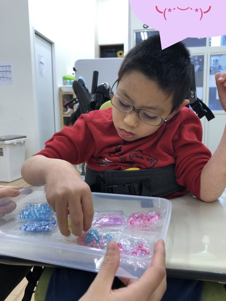 カプセルにかたちや大きさの違うビーズを入れて、ころころ~➿ふりふりっ!