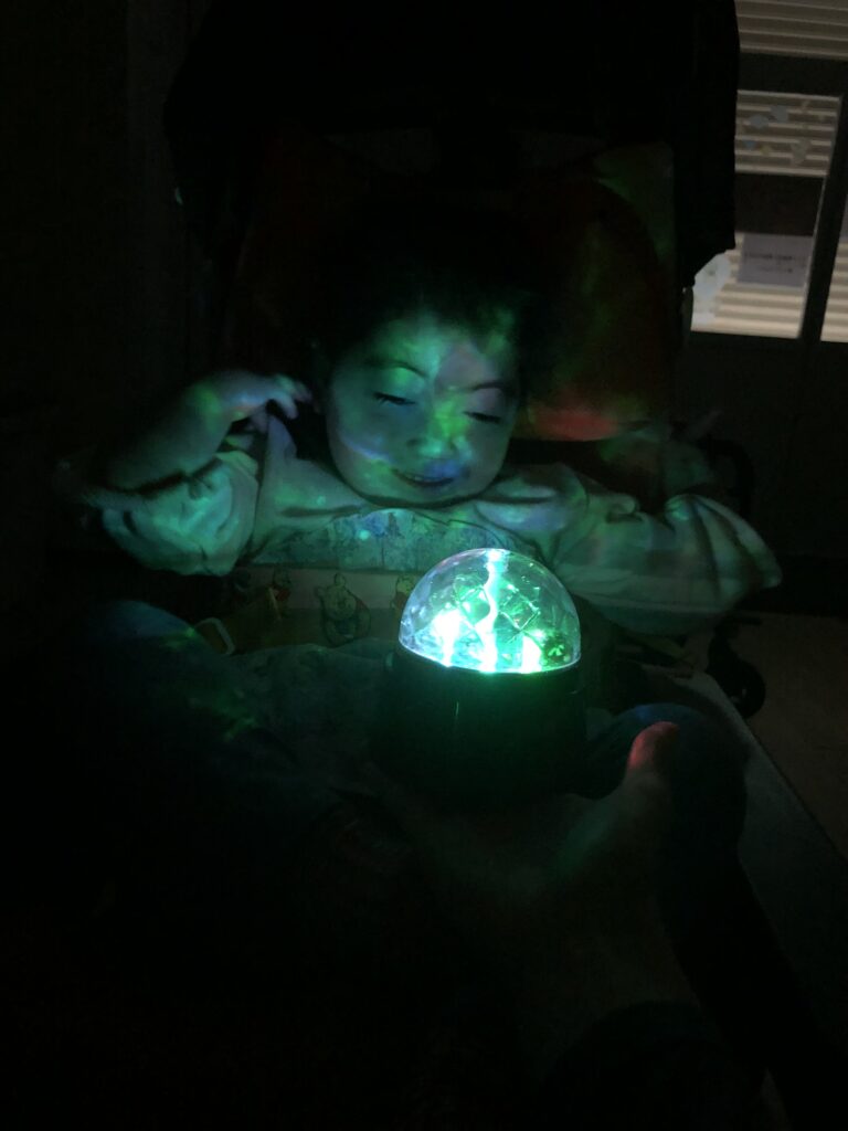 お気に入りのミラーボールを見つけると自ら手を伸ばし、回っている光をじーっと見つめていました🤗
