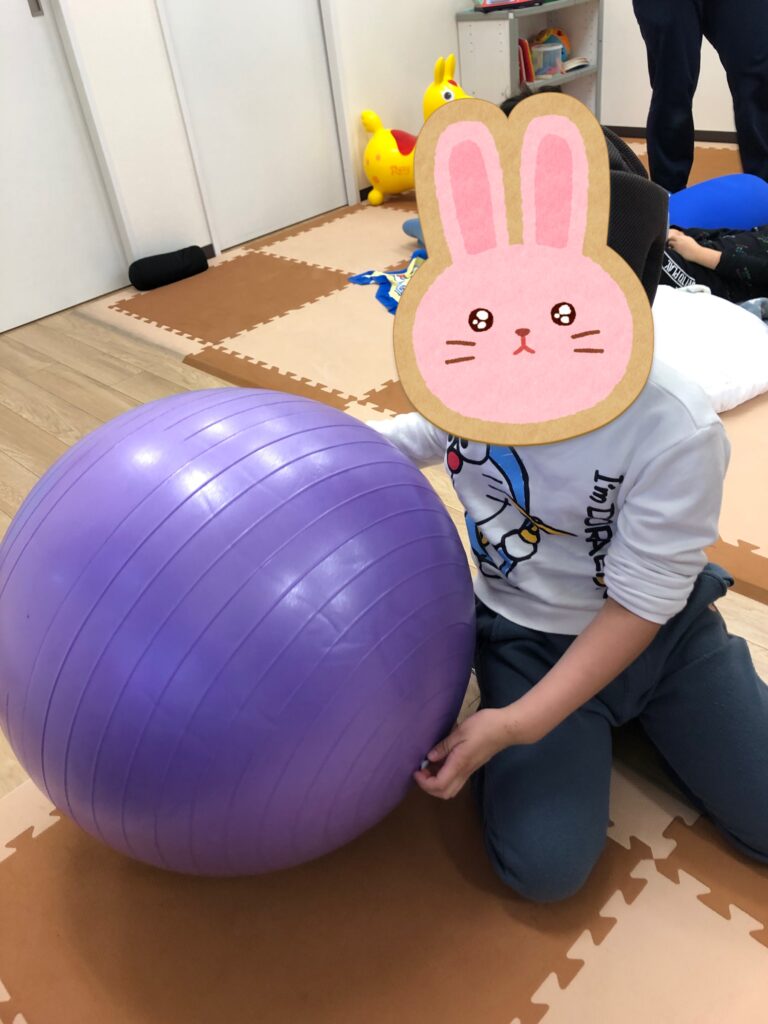 バランスボールは、子どもたちみんな大好きで乗ると素敵な笑顔を見せてくれます(●´ω`●)