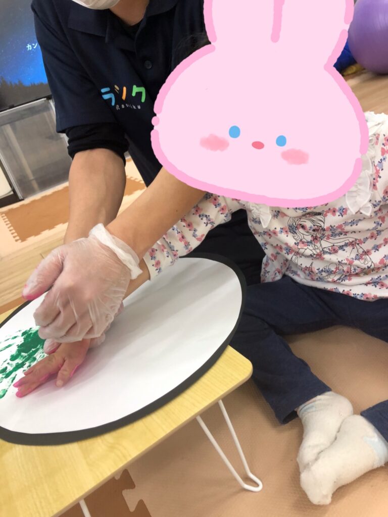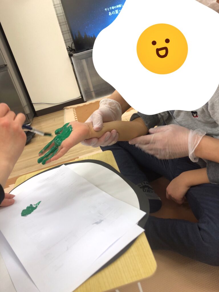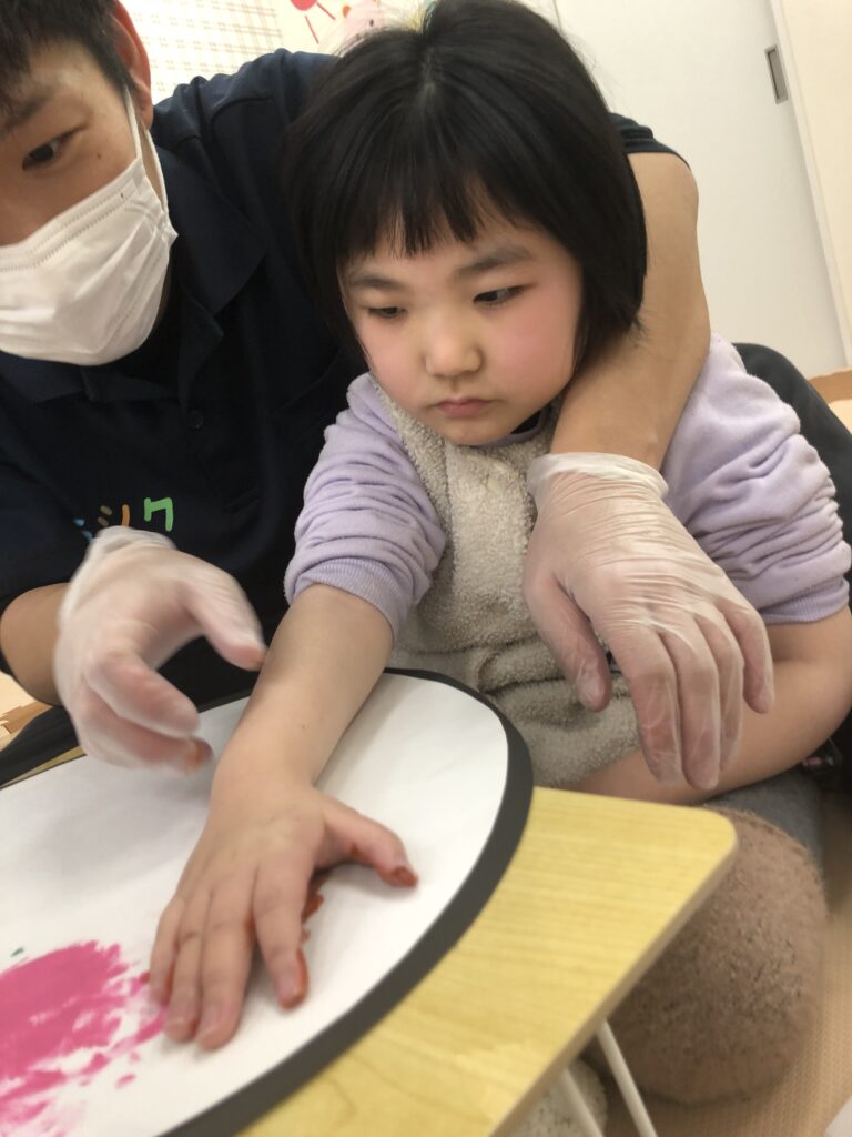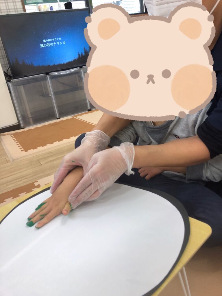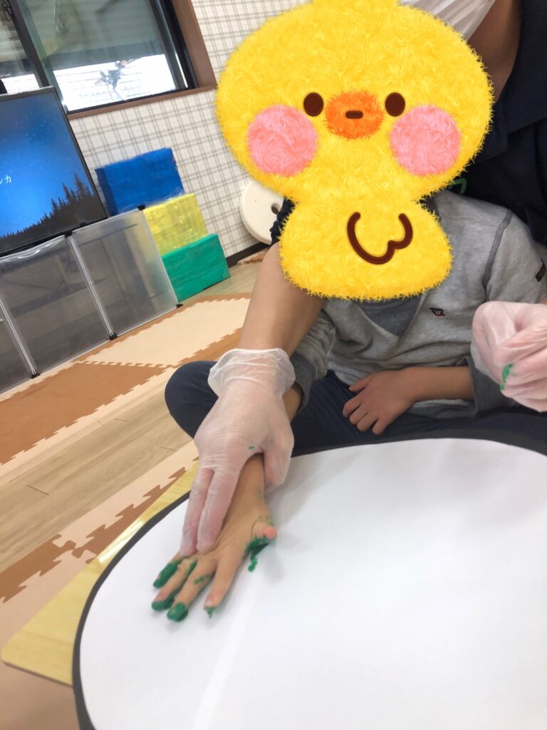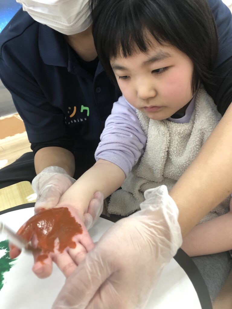 手に絵の具を塗っているときも、ぺたー!としているときも真剣な眼差し👀✨