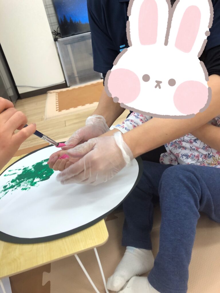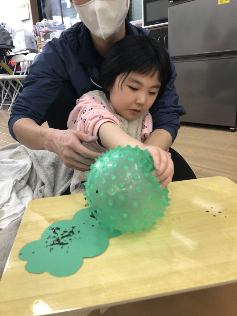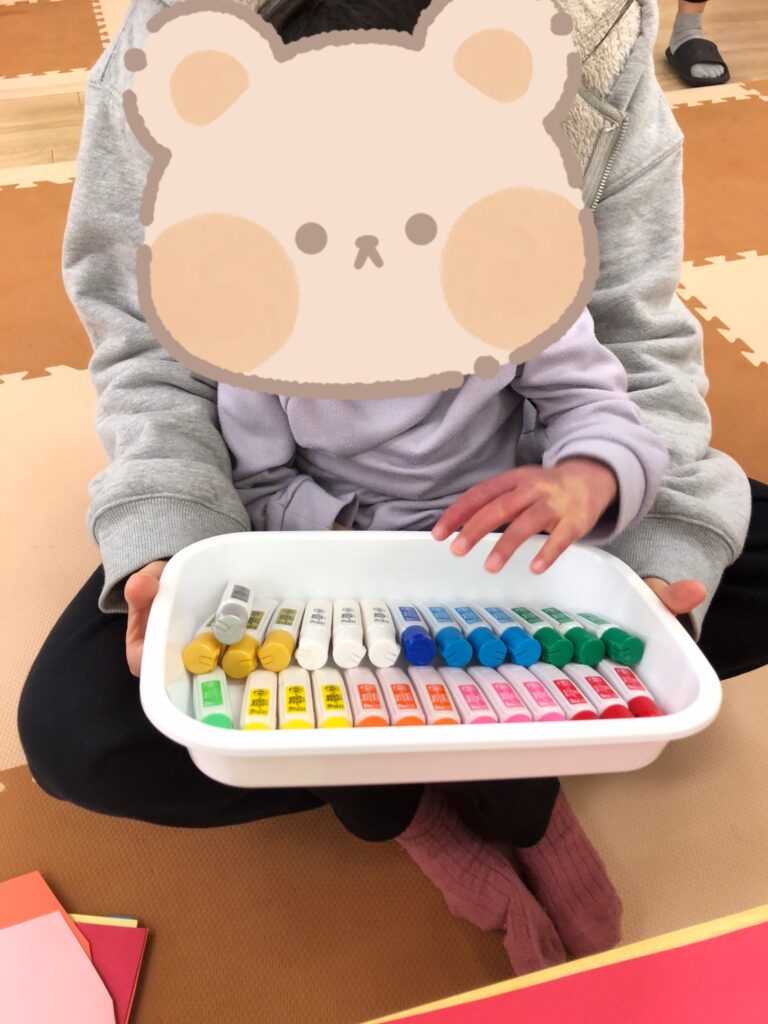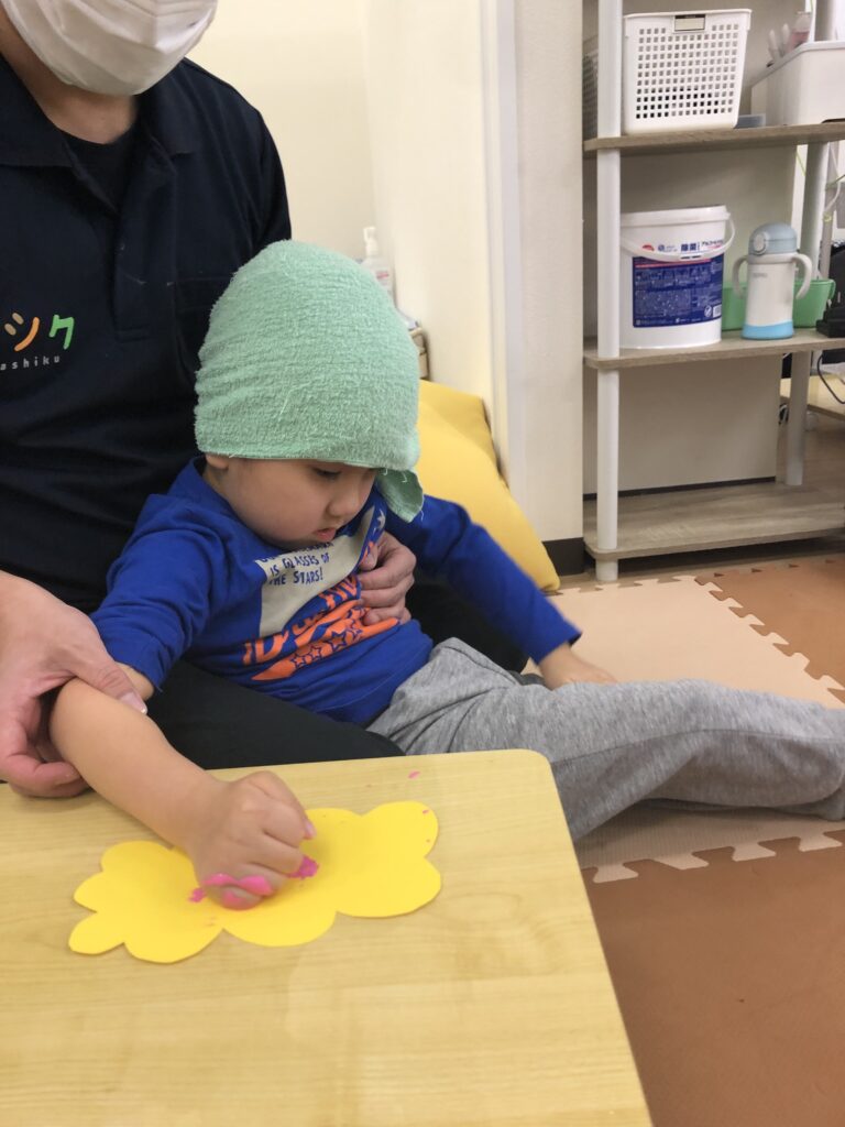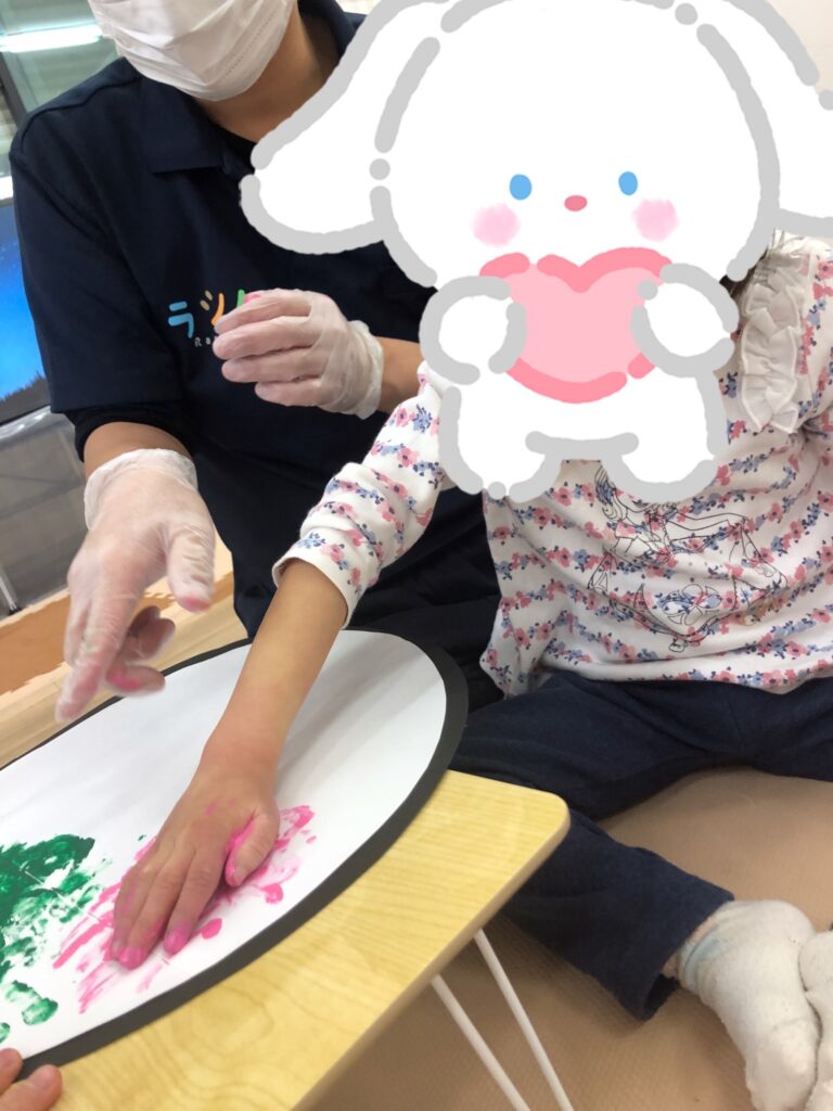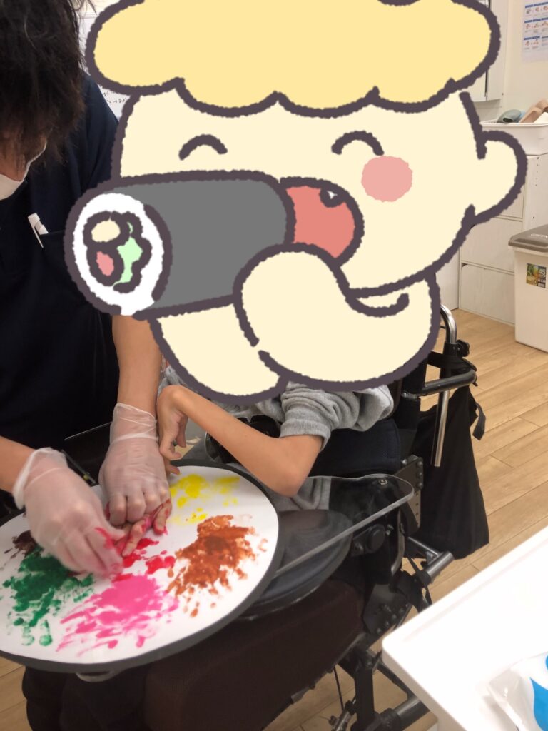 手に絵の具を塗っているときも、ぺたー!としているときも真剣な眼差し👀✨
