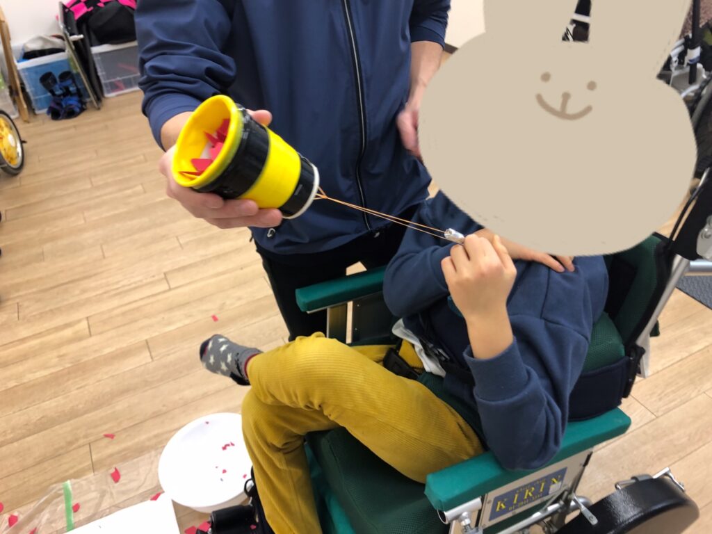紐を上手に引っ張って紙を飛ばしていきました✨