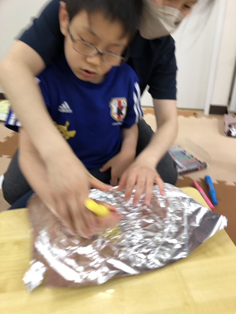 3、画用紙をジップロックに入れて、ぺたぺた…!