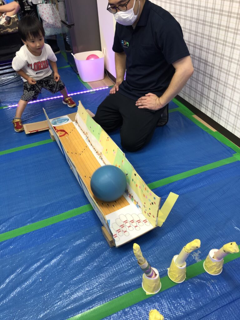 以前みんなで作ったチンアナゴをボーリングで倒します!