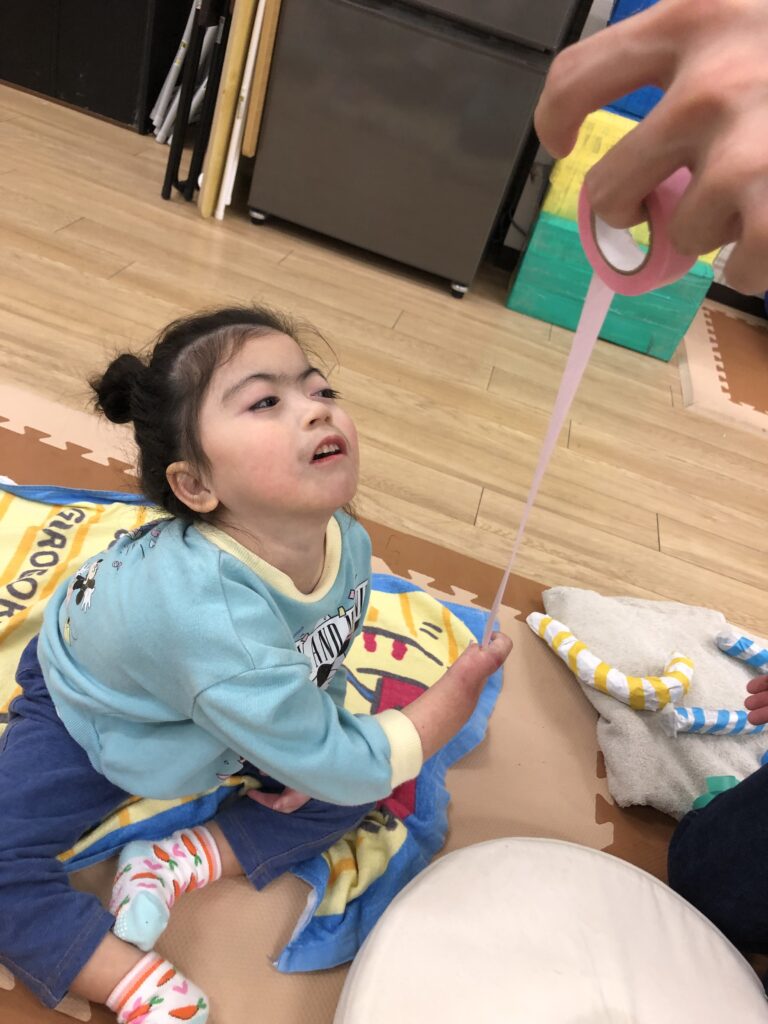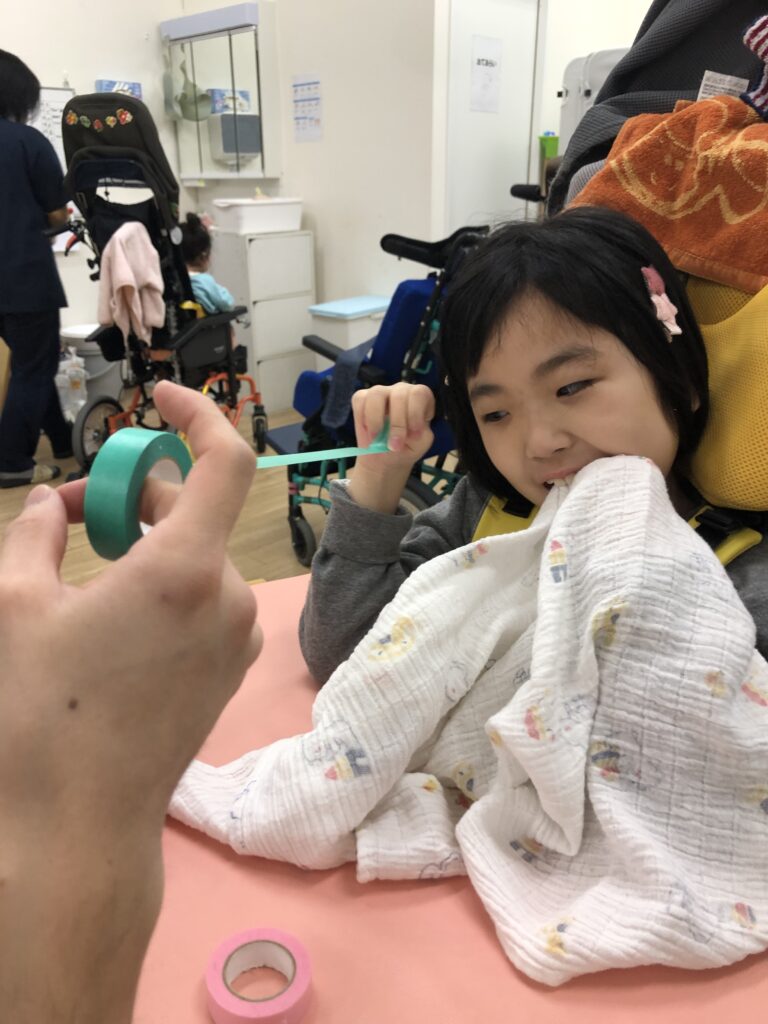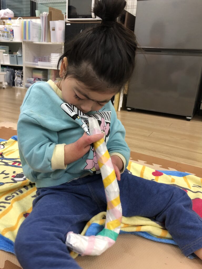 好きな色のテープをビーッと伸ばして巻き巻きしていきました ➰