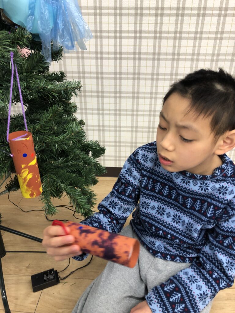 この日のために頑張って作ったオーナメントを一緒に飾り、ツリーを豪華にしていきました🎄