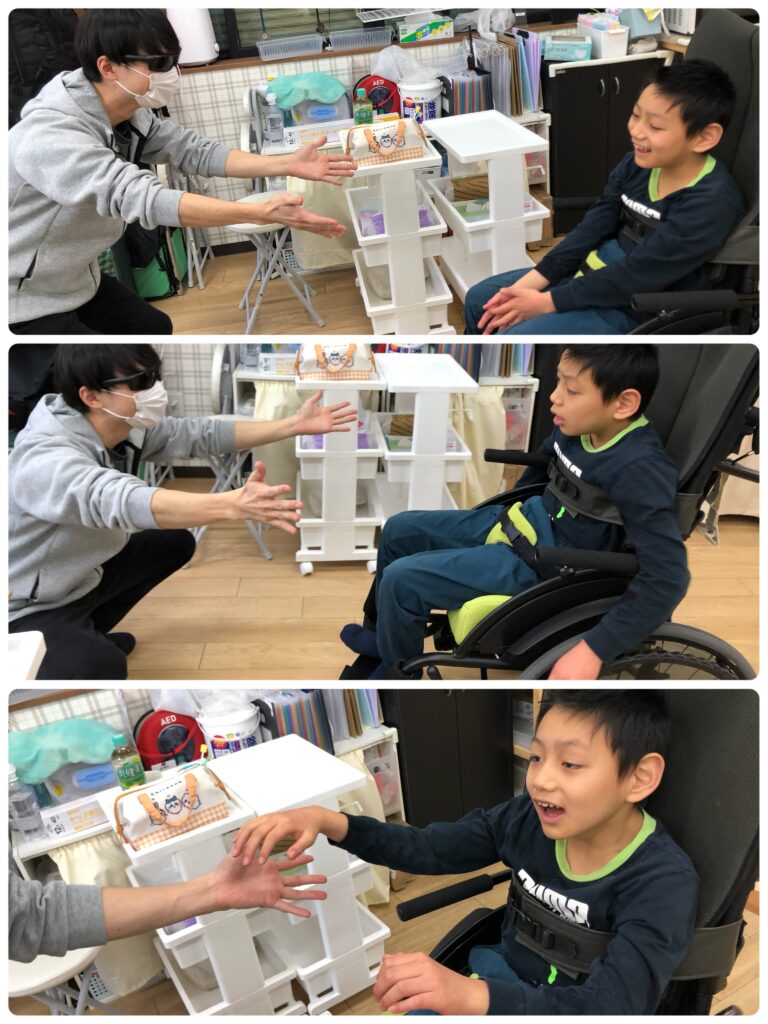 車椅子で自走してスタッフの元に近寄っていく子🏃💨