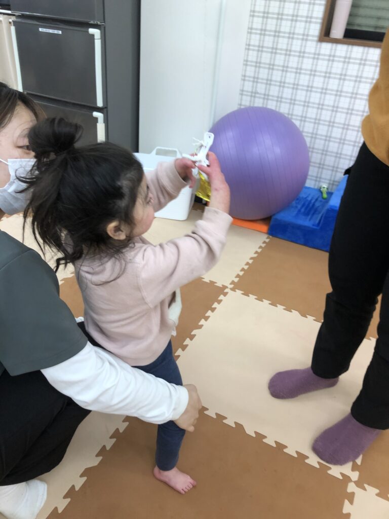ボールを投げたり、足で踏んだり、コロコロで叩きます!