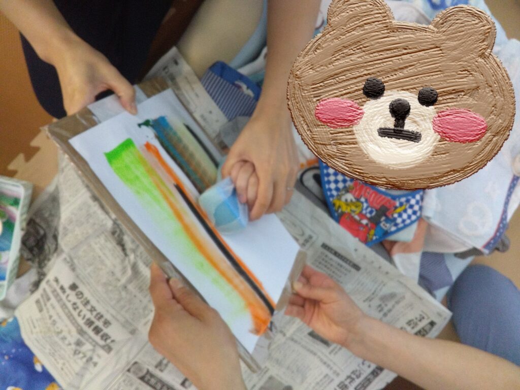 今回は絵の具遊び♪で色づけをした画用紙を乾かして作品にしていきました!!( *´艸`)