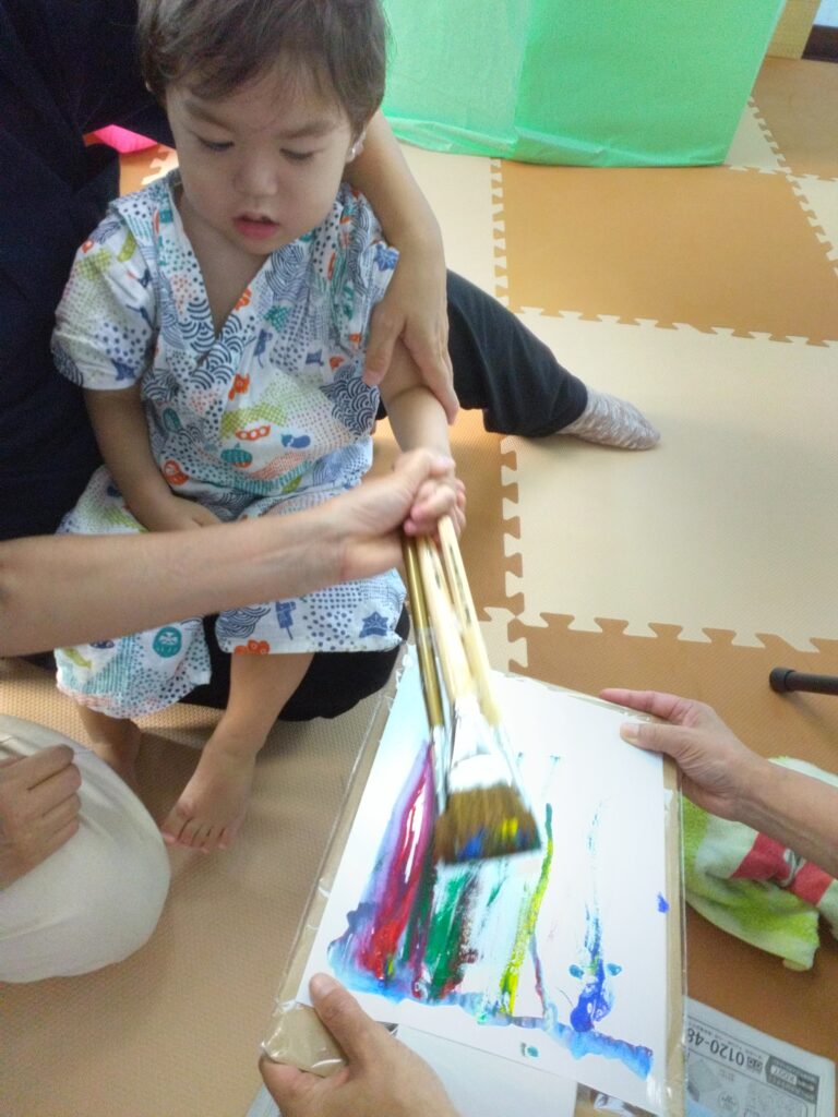 次に絵の具を乾かした画用紙をビリビリちぎって遊びました♪♪👍🎶🎶