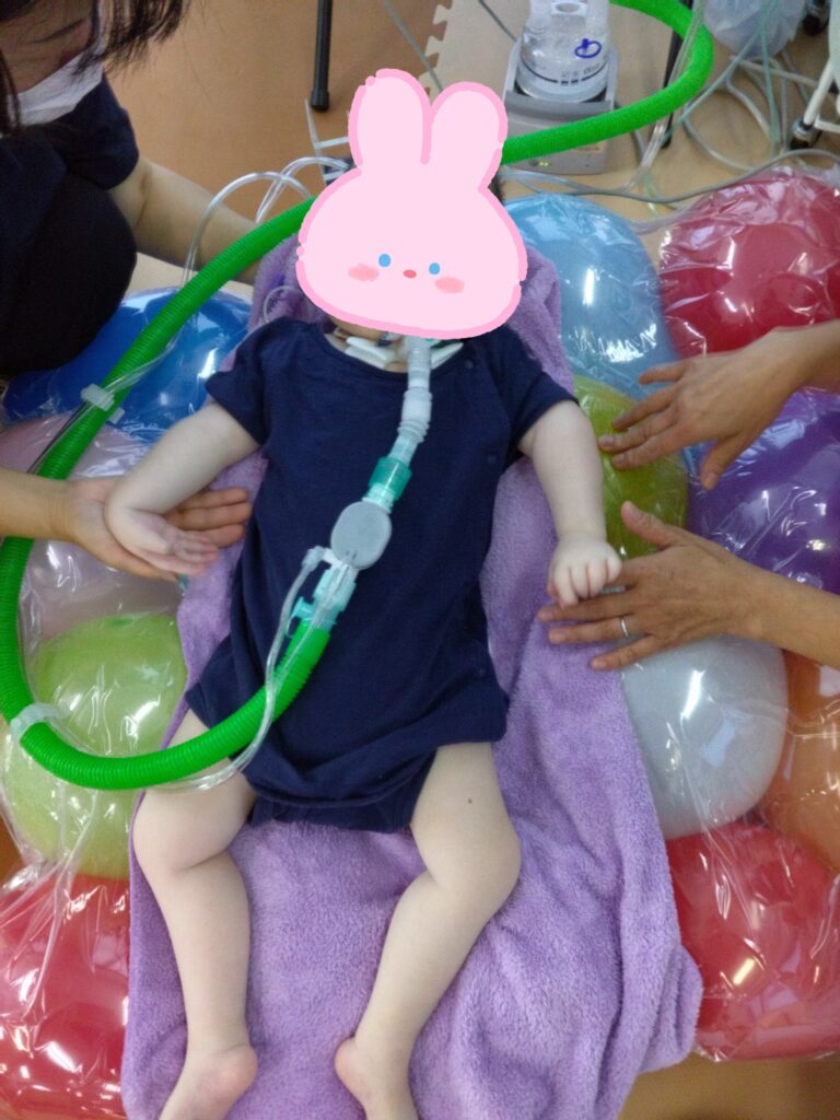 人工呼吸器をつけていて なかなか 自由にうごけないボク 🛶ゆらゆら🌿ゆすってもらえると せなかの痰も しっかり出せるよ🪅 でもね はじめてだったから とっても びっくり😜 おめめ👀が たくさんうごいたよ