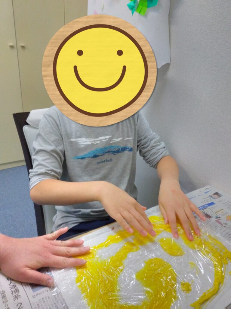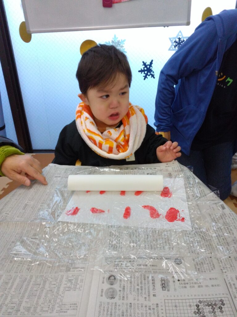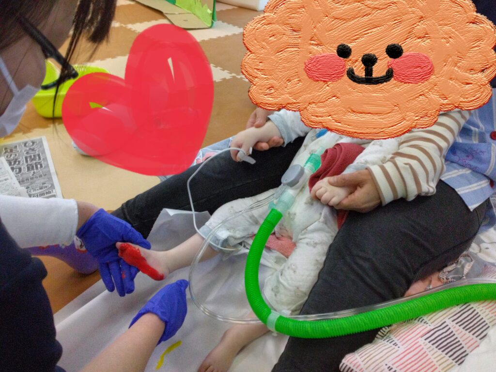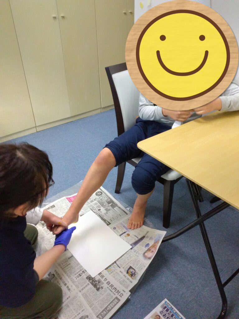 足の裏に絵の具を塗る時、くすぐったくて笑いが止まらず、明るい雰囲気に包まれました😋