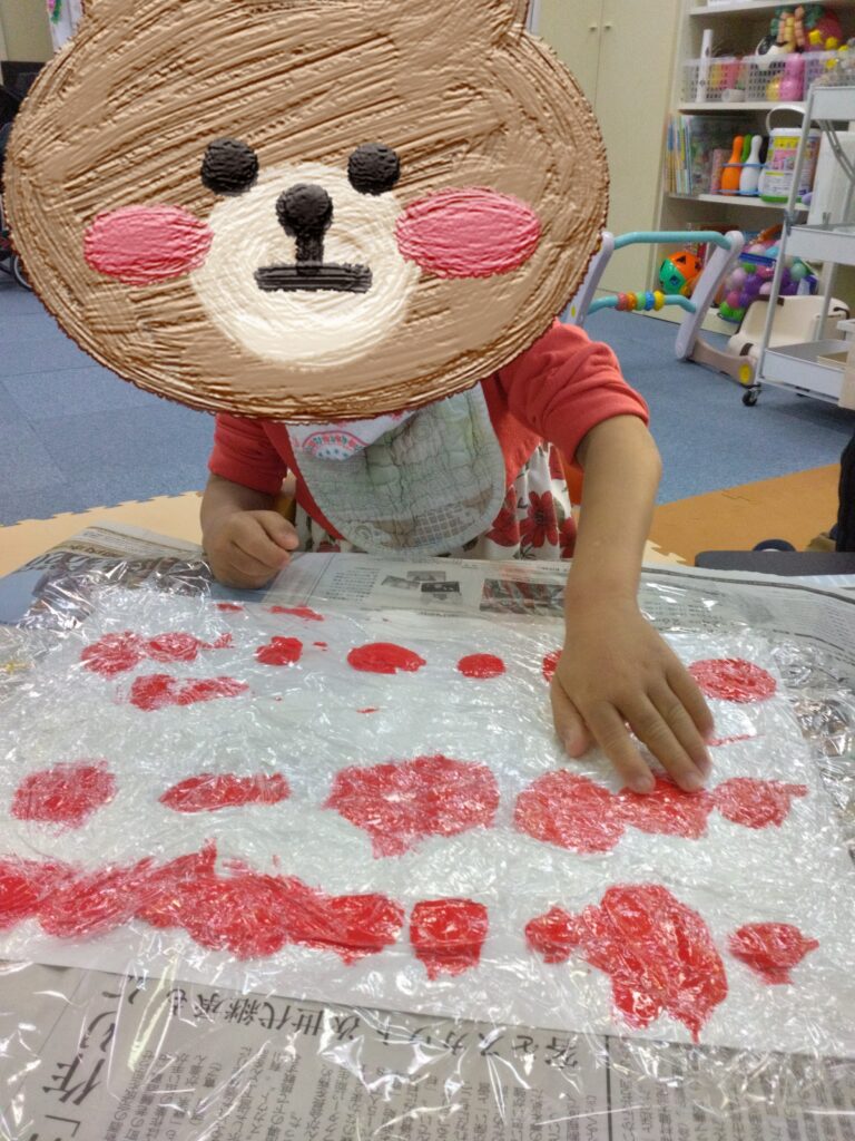 絵の具やラップの感触ってどんな感触かな😊?