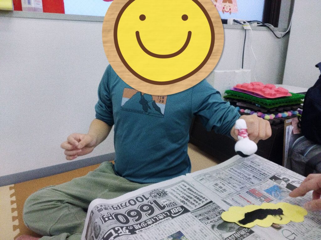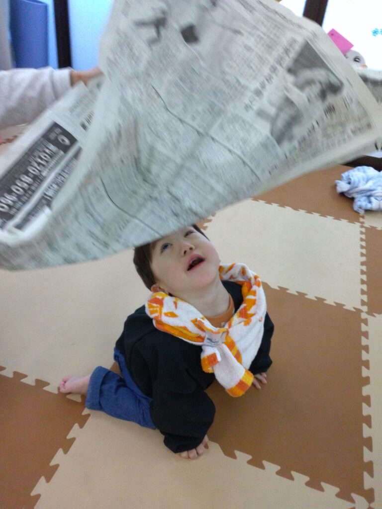 泣き顔になってしまいましたが、最後に新聞紙で遊んで大はしゃぎ✨