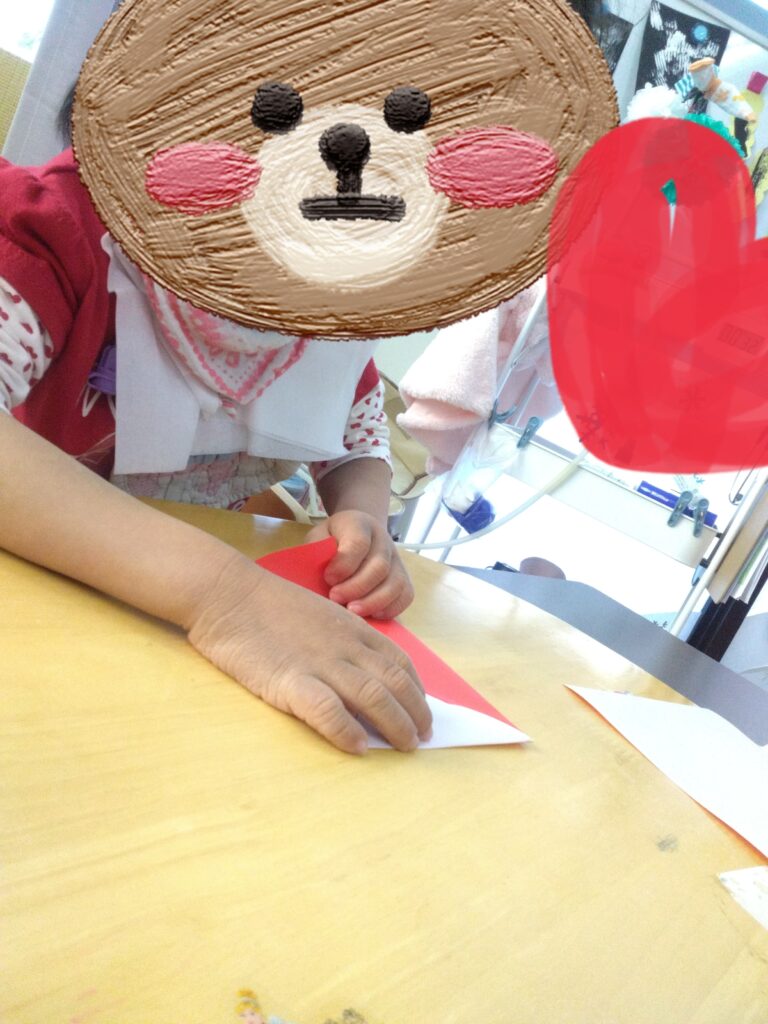スタッフと一緒に折り紙を折ったり、