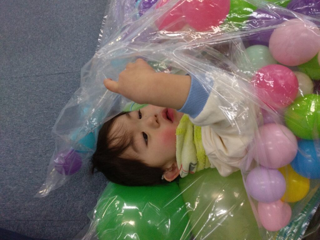 バルーンベッドはドキドキ😢だったけど、ボールベッドは笑顔になっちゃう🥰