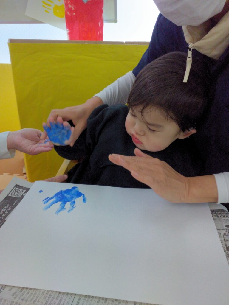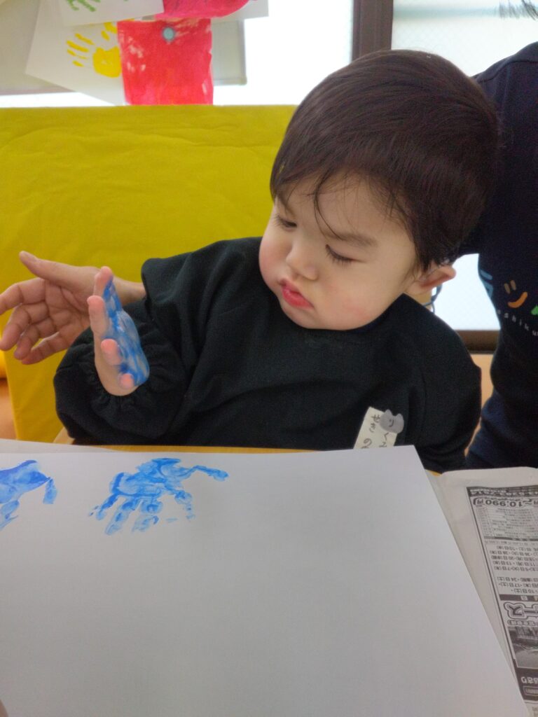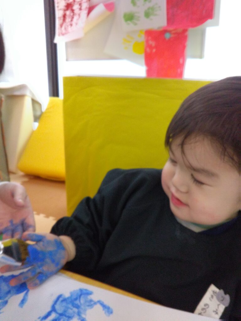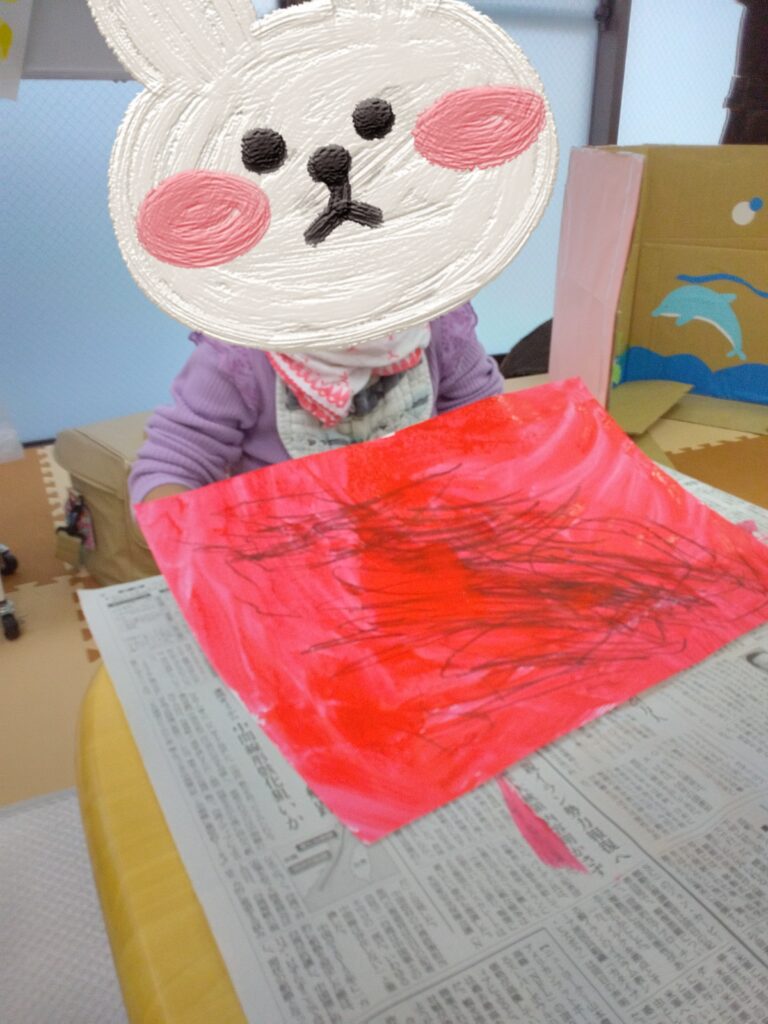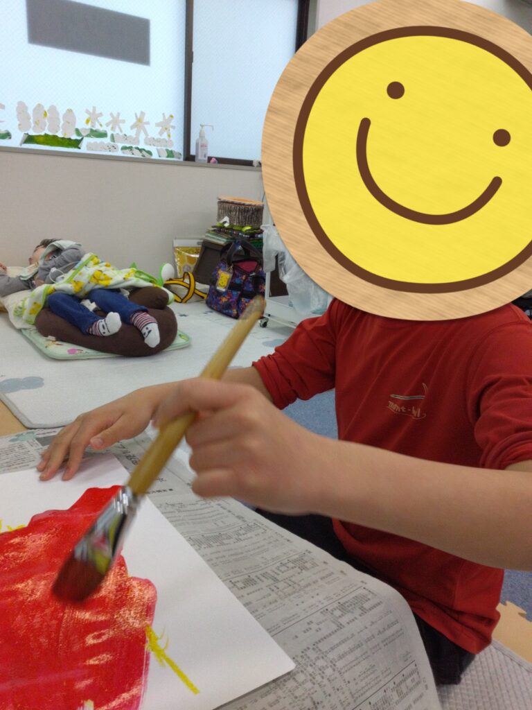 ダイナミックに画用紙にベタッ!として、満面の笑顔を見せてくれました😊