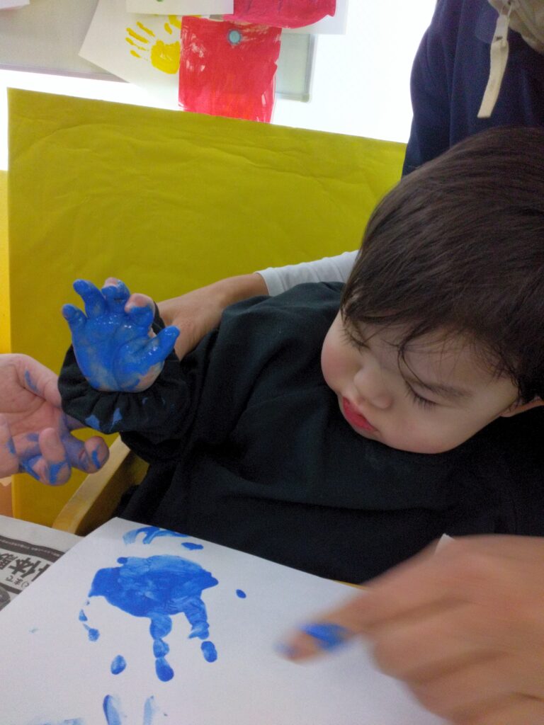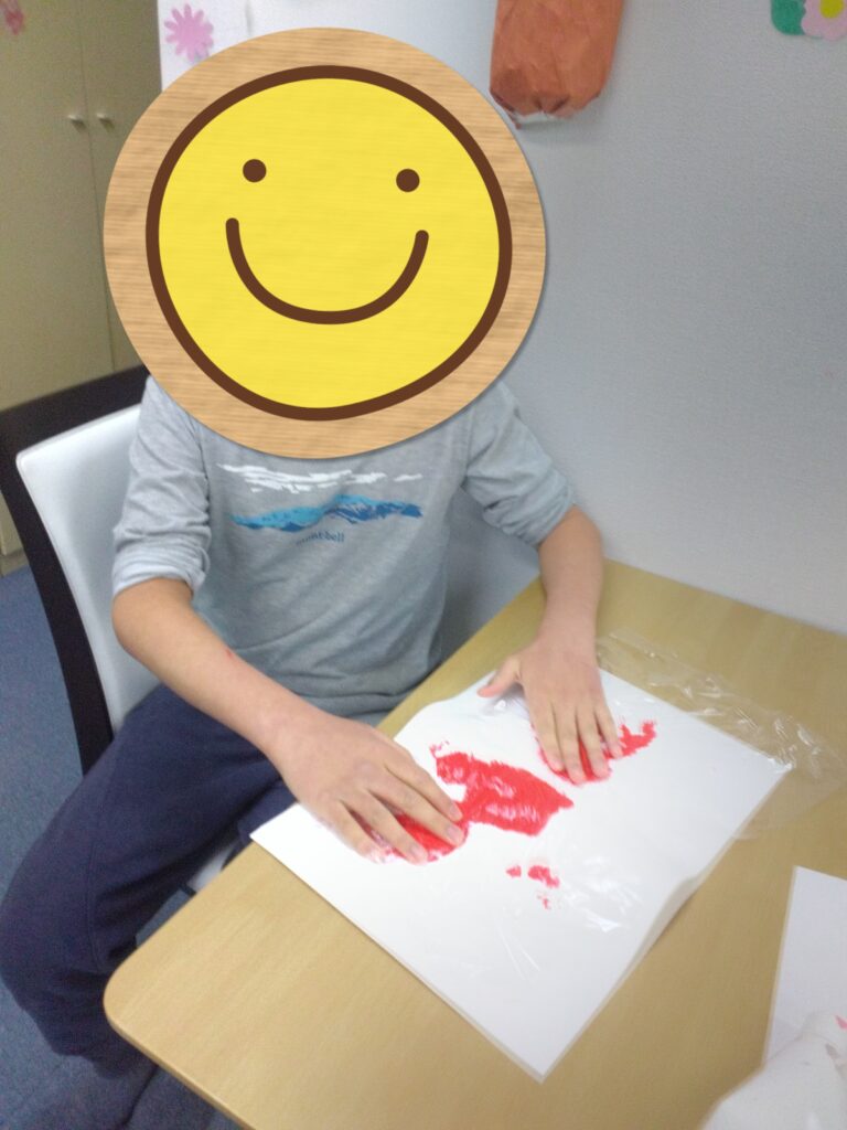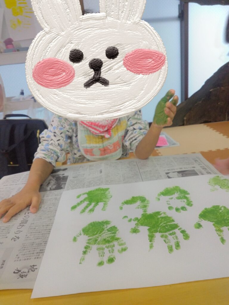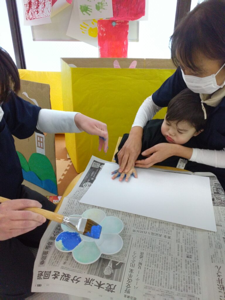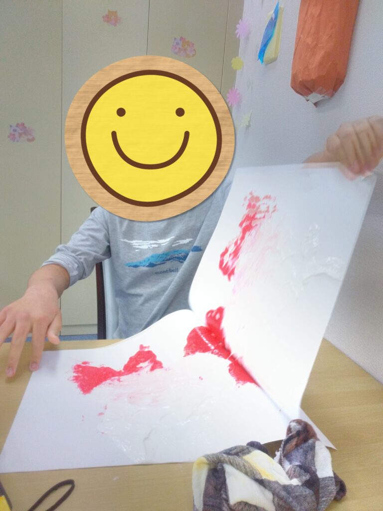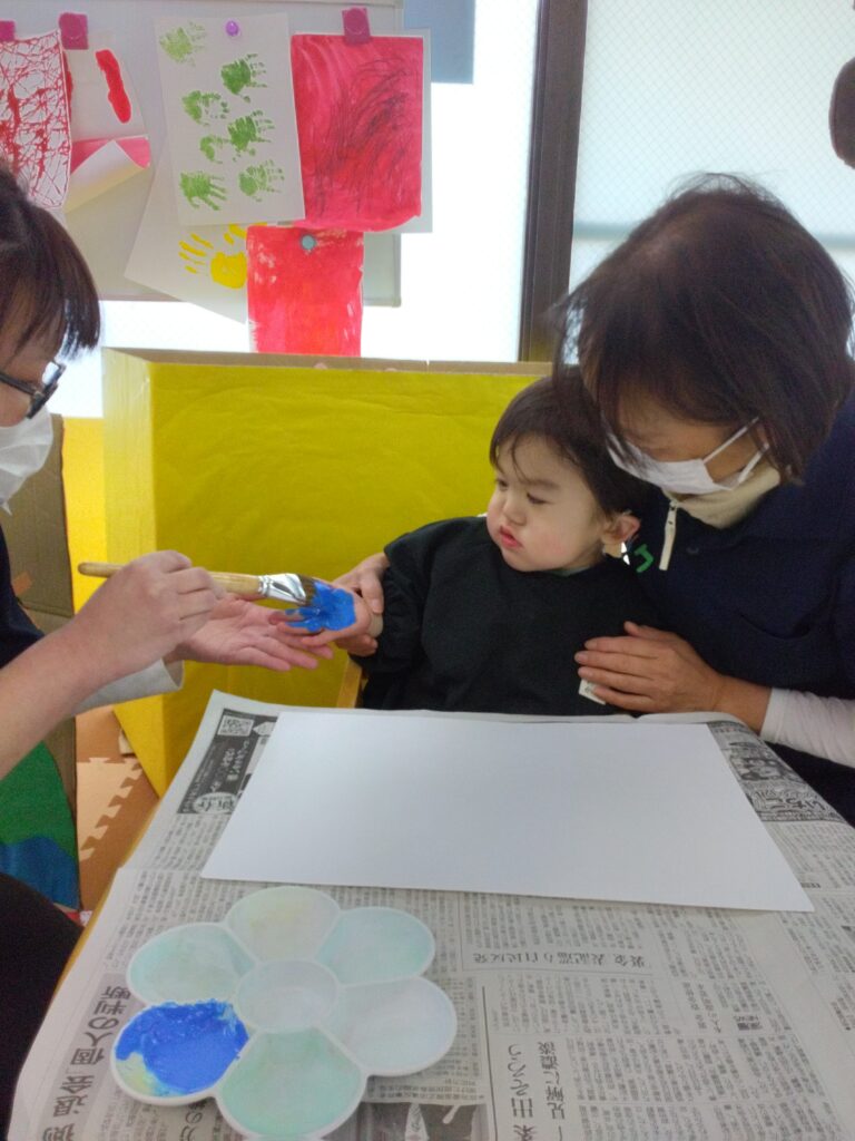 ダイナミックに画用紙にベタッ!として、満面の笑顔を見せてくれました😊