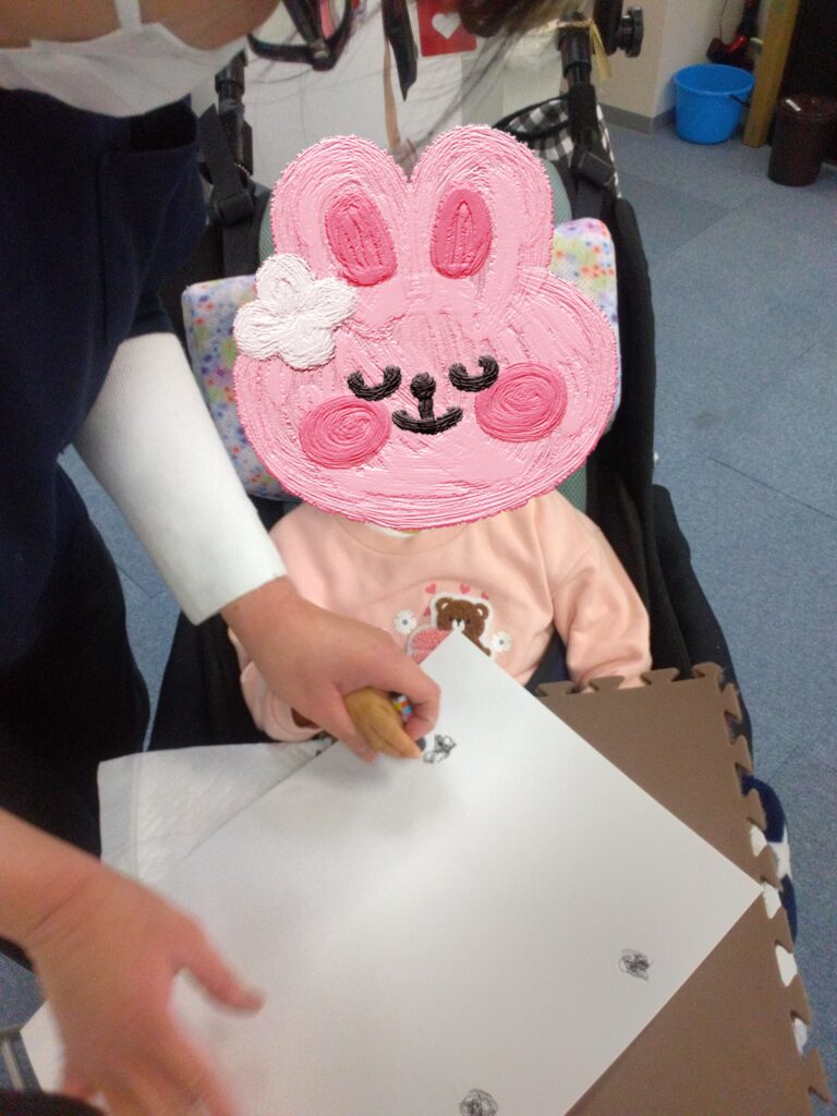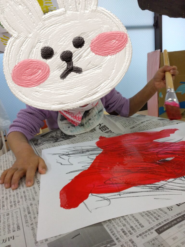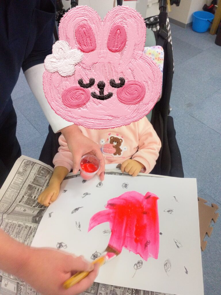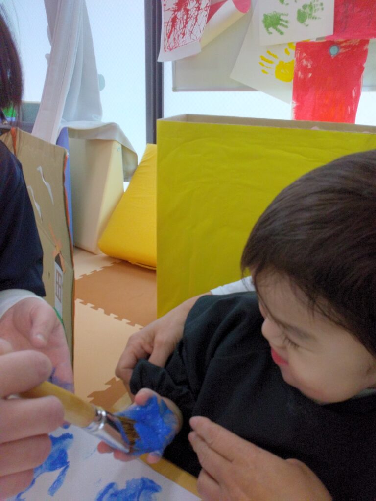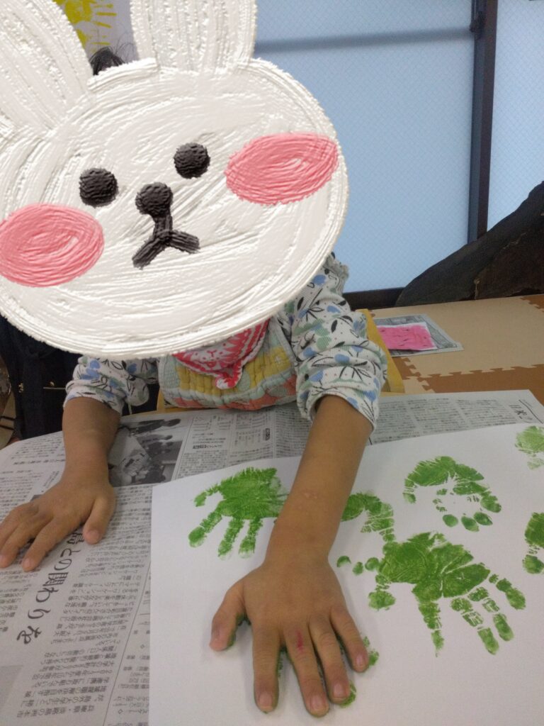ダイナミックに画用紙にベタッ!として、満面の笑顔を見せてくれました😊