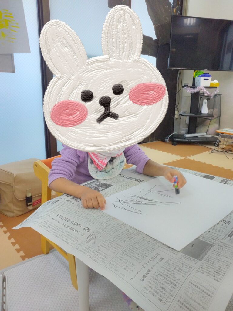 眠いながらも絵の具で色を塗る際は画用紙が動かないように一生懸命持っていてくれました♪