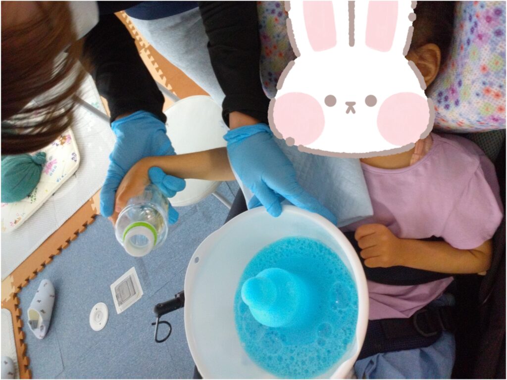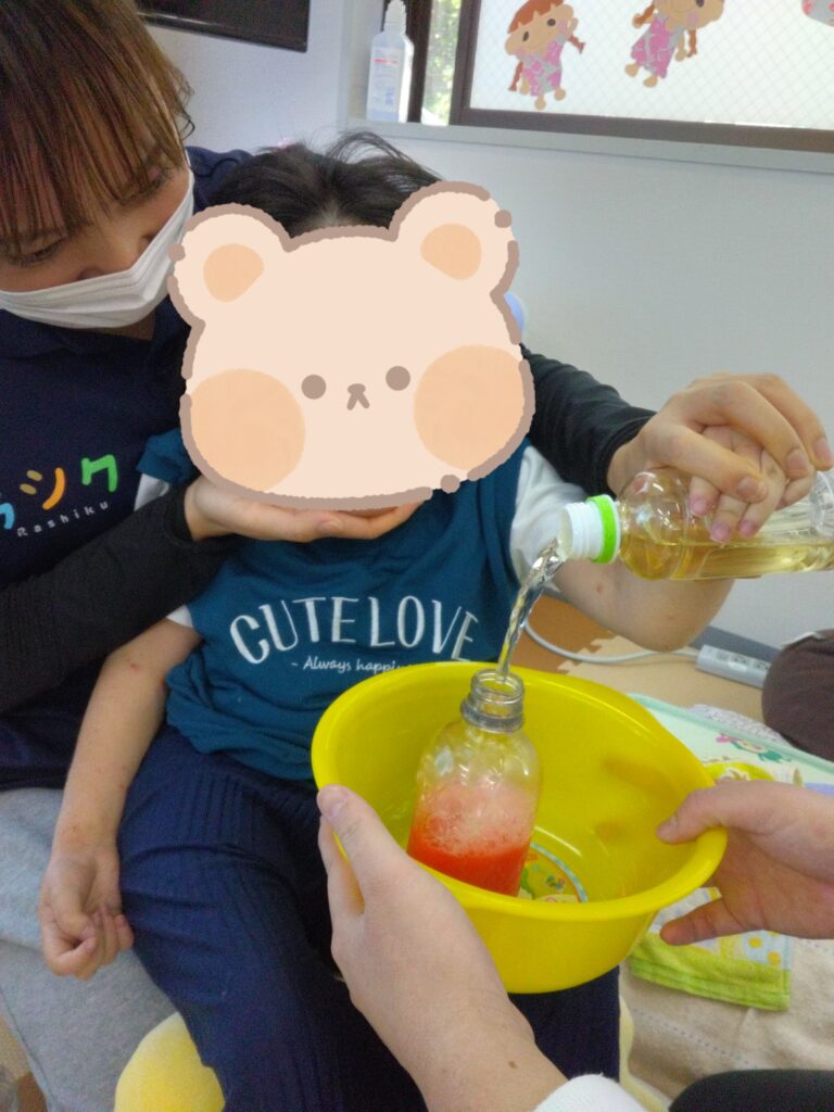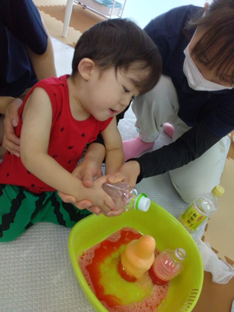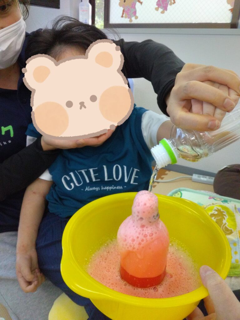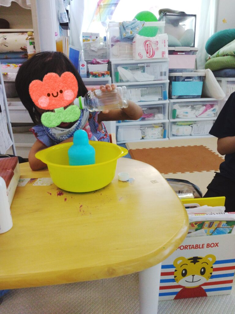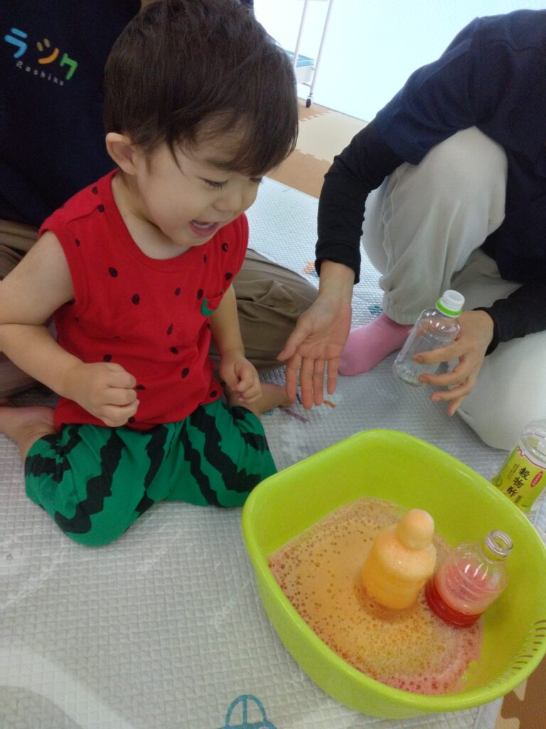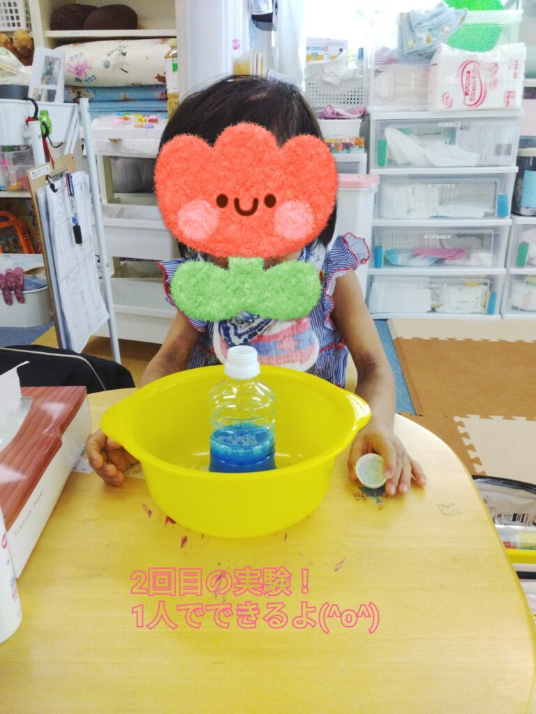 お酢の匂いを嗅いで泣いてしまったお友達😢でも噴水ができたときはじっと見てくれました😁💓