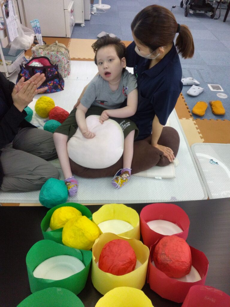 僕は何色にしようかな~?スタッフにお手伝いしてもらいながらオレンジのヨーヨーにしたよ😋