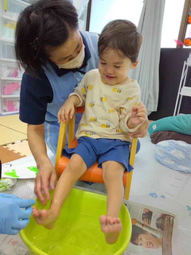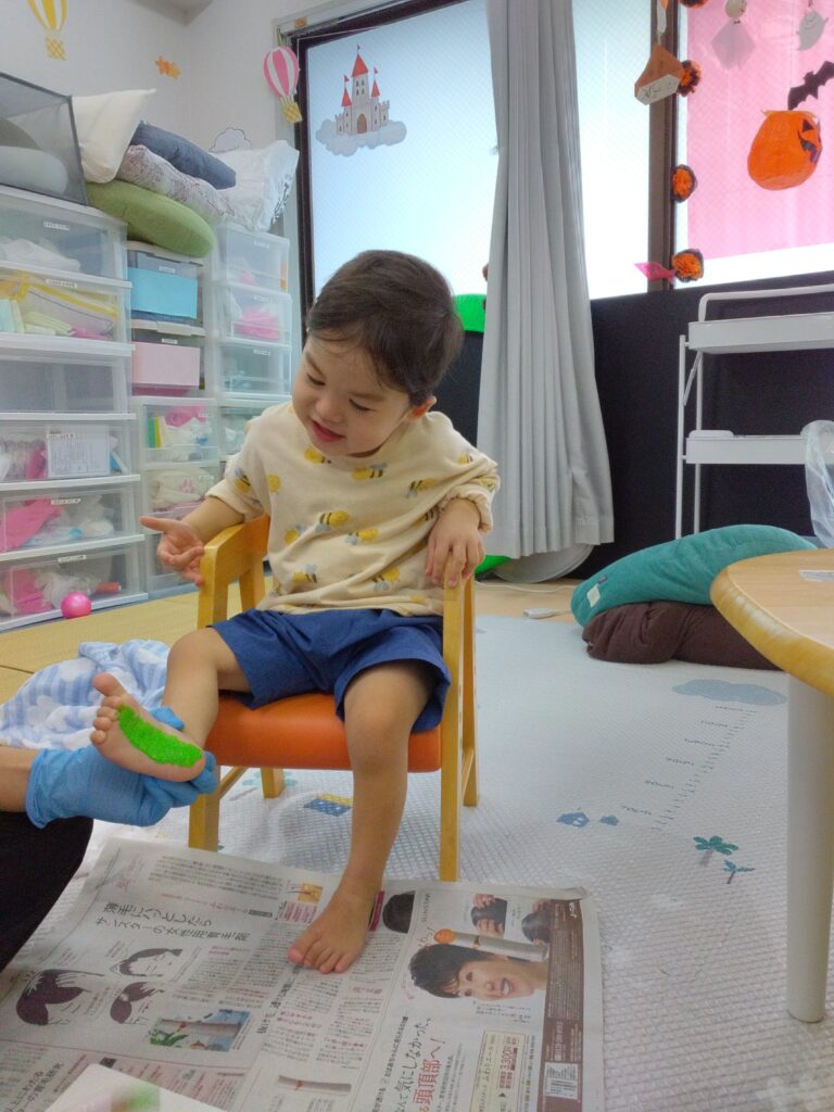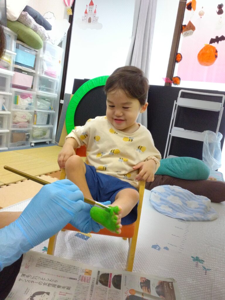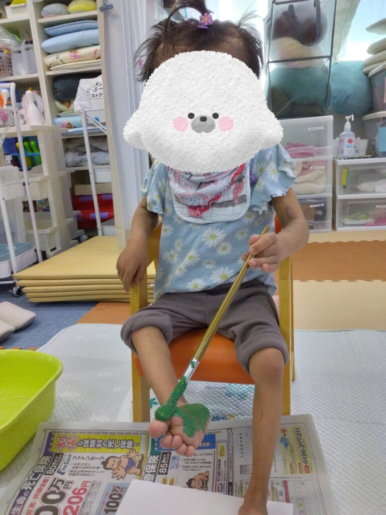 緑になっていく足をじーーーっと見つめる子や自分で筆を持って塗る子など、さまざまでした😊
