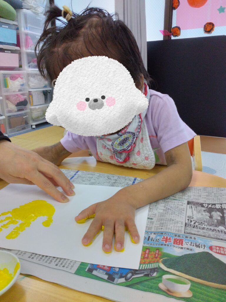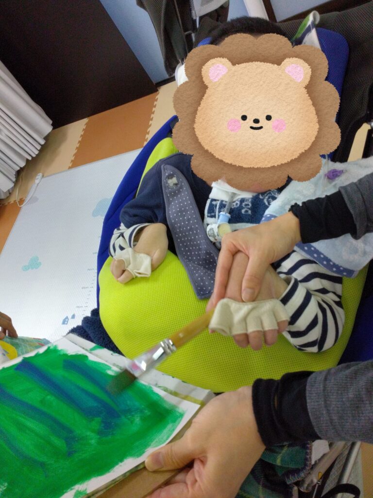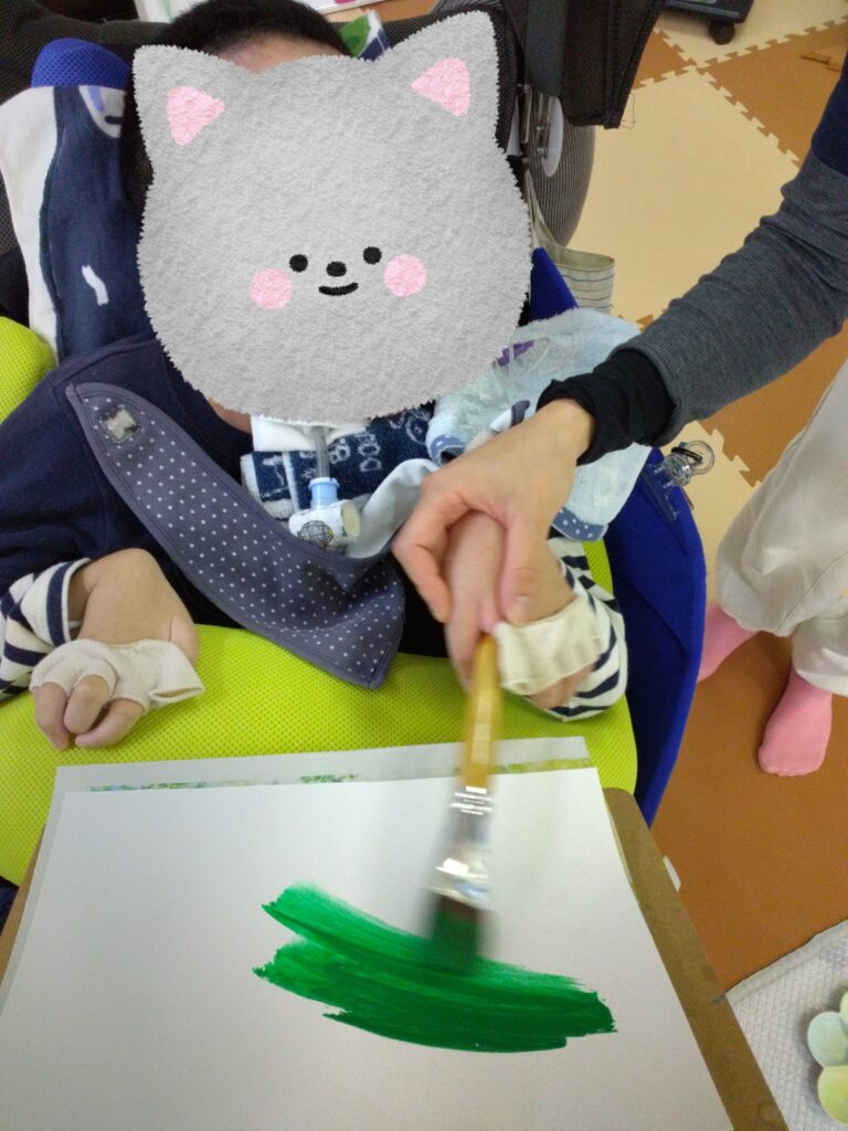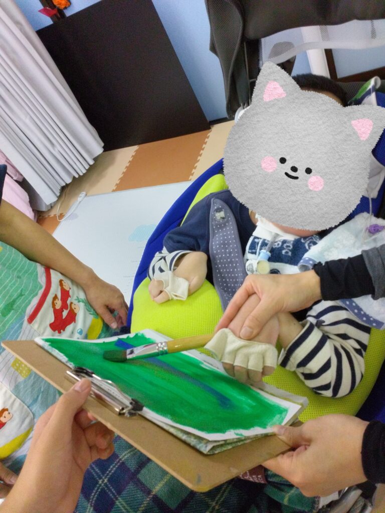 緑になっていく足をじーーーっと見つめる子や自分で筆を持って塗る子など、さまざまでした😊