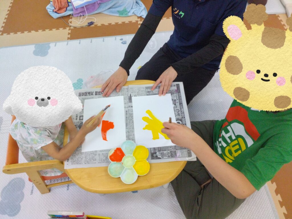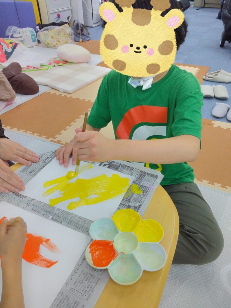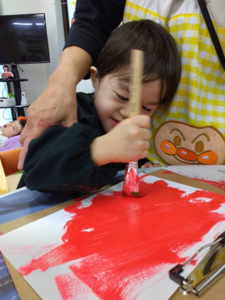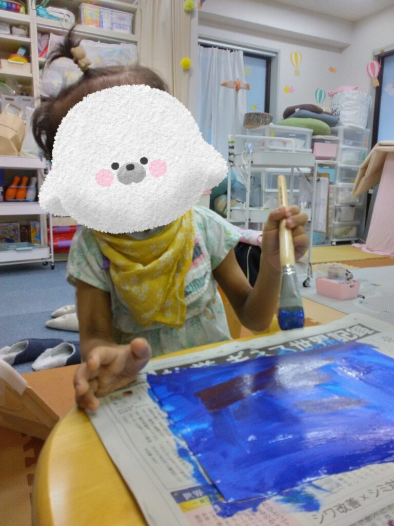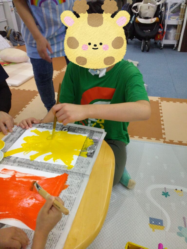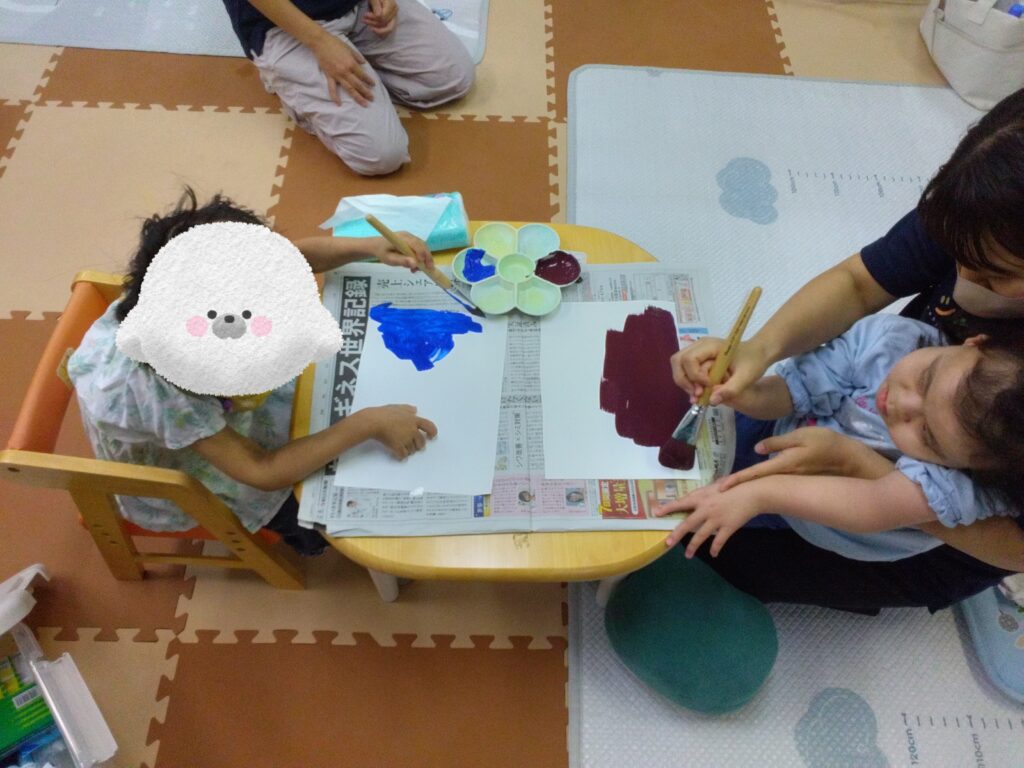 みんなダイナミックに塗ってくれたり、お友達の色を借りて混ぜてみたりしました🎵