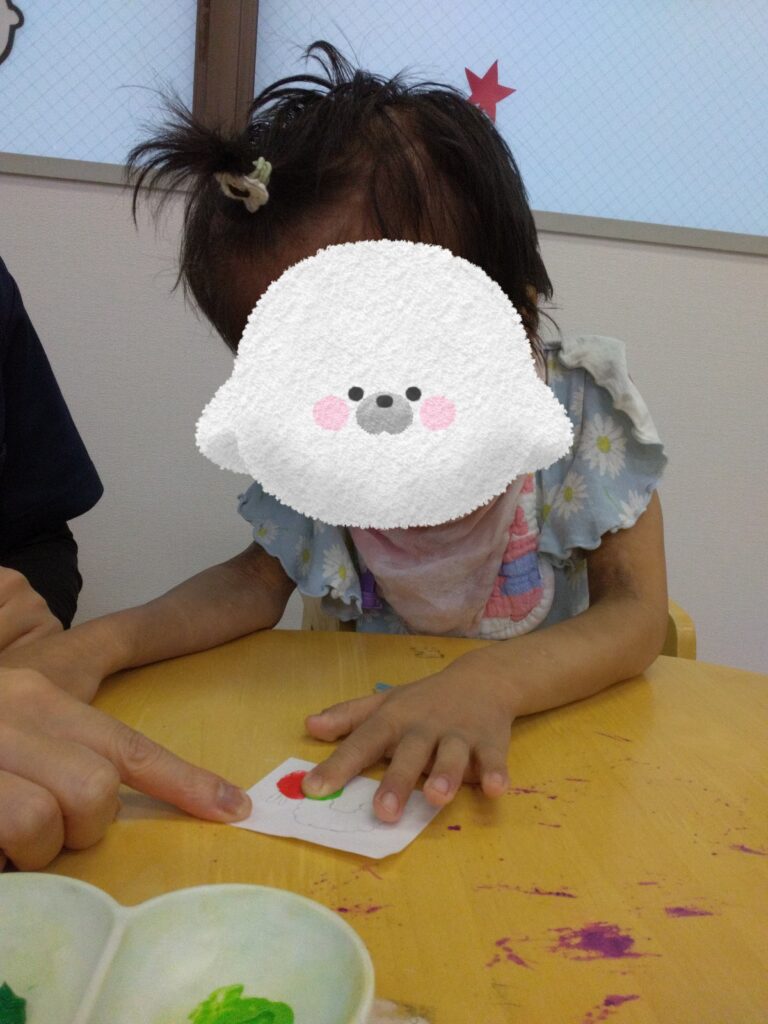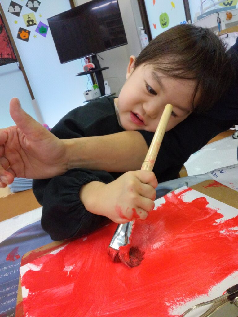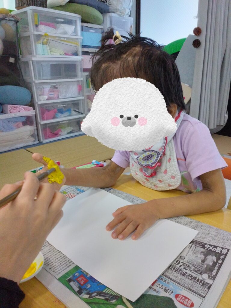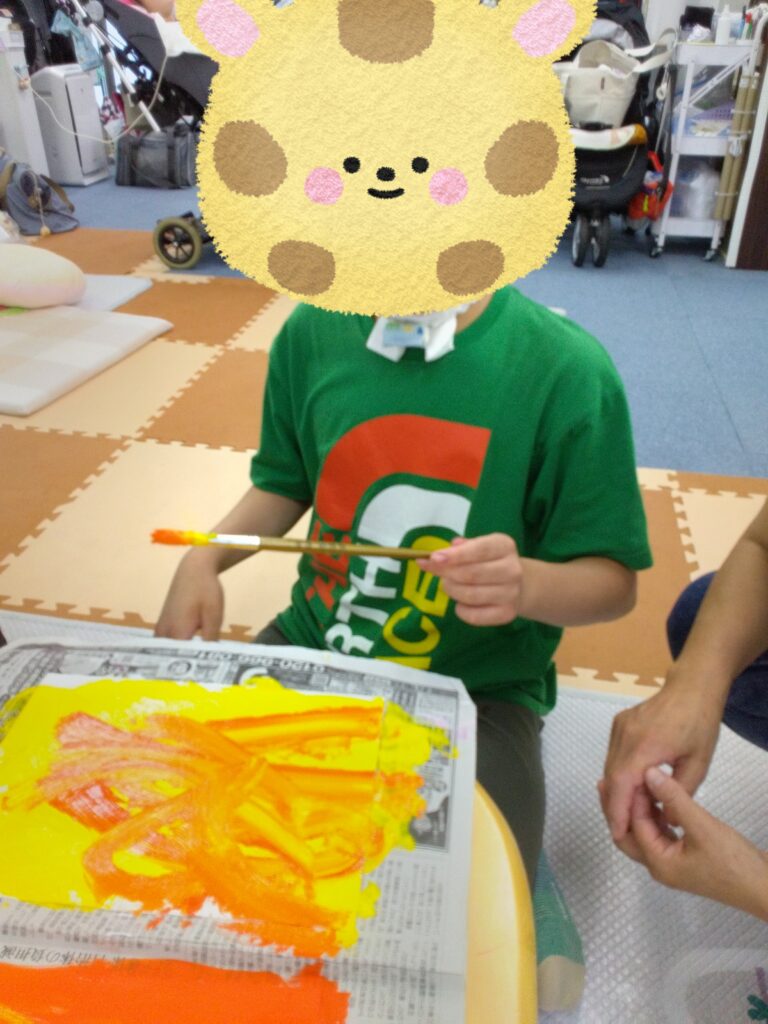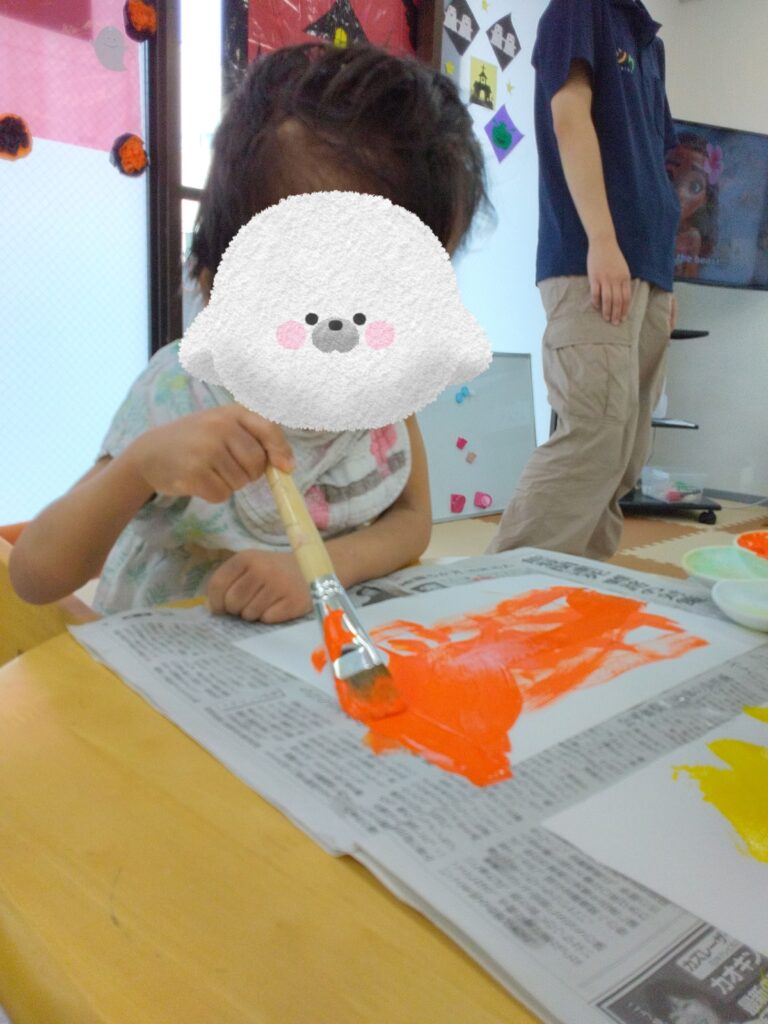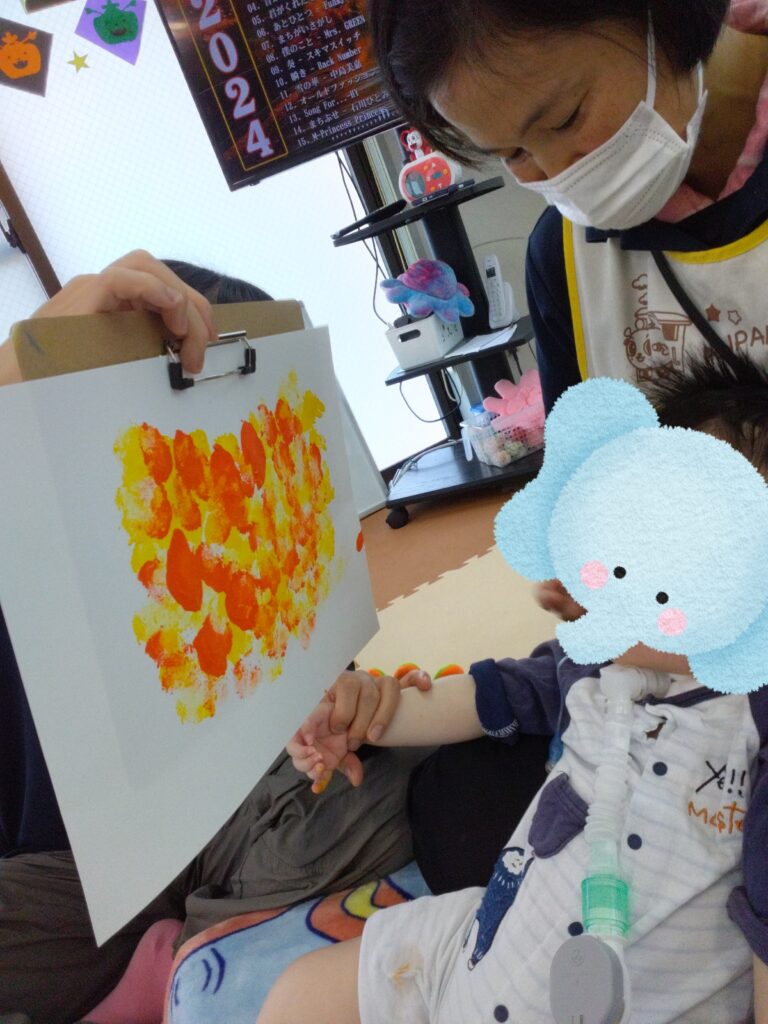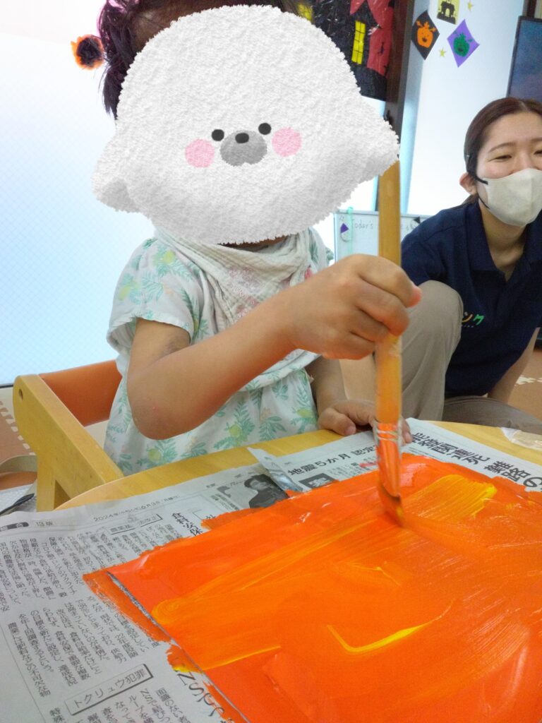 みんなダイナミックに塗ってくれたり、お友達の色を借りて混ぜてみたりしました🎵