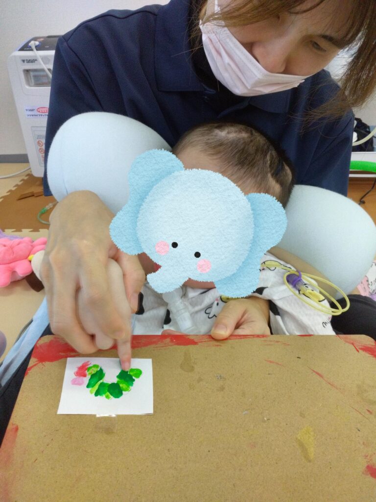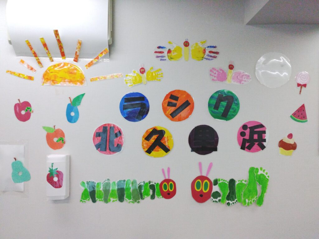 子どもたちの手形や足形で「はらぺこあおむし」の世界を作ろう!!となりました✨