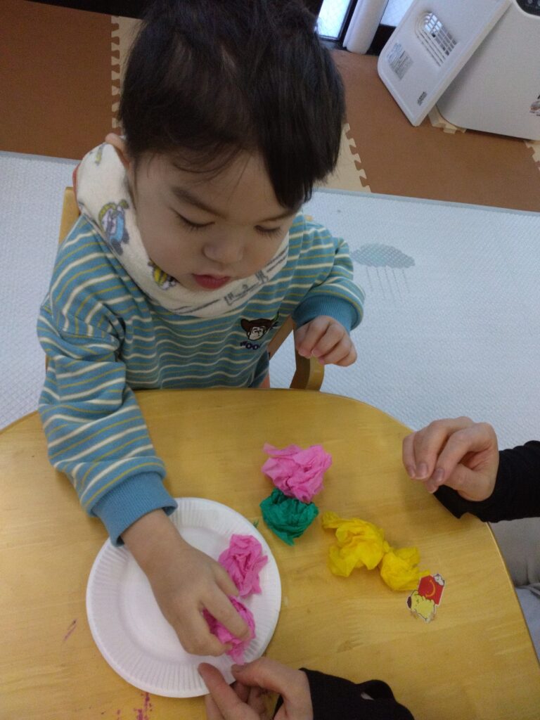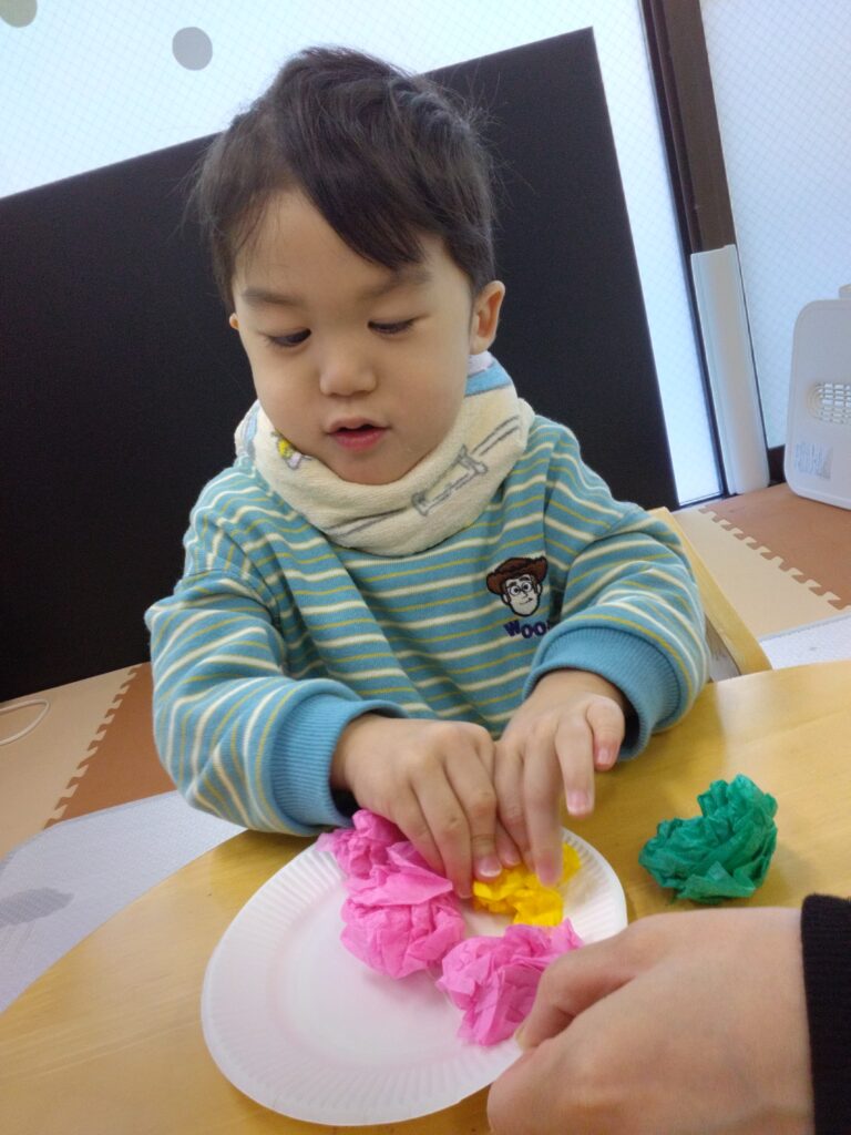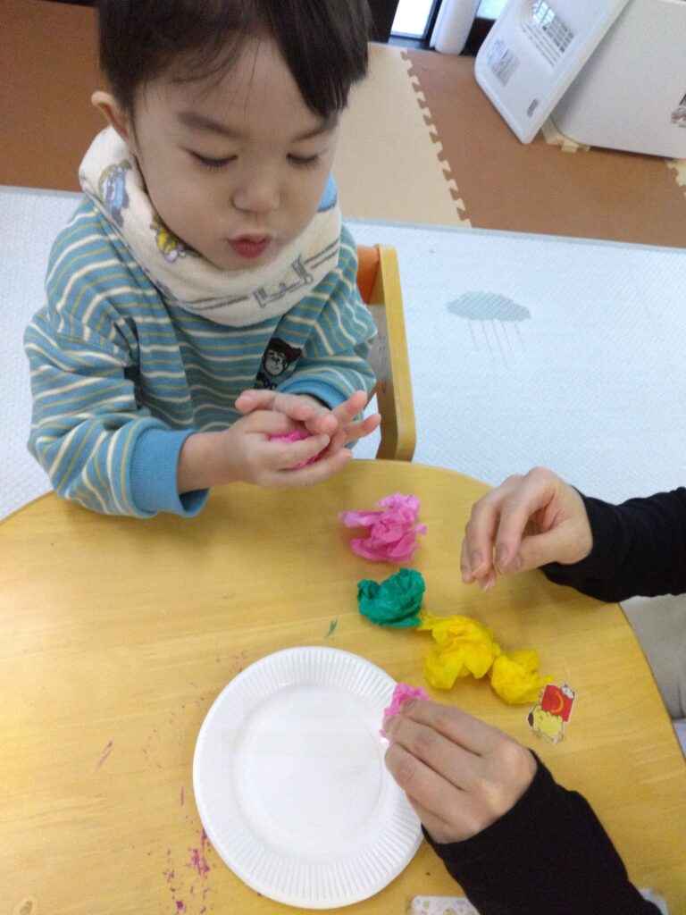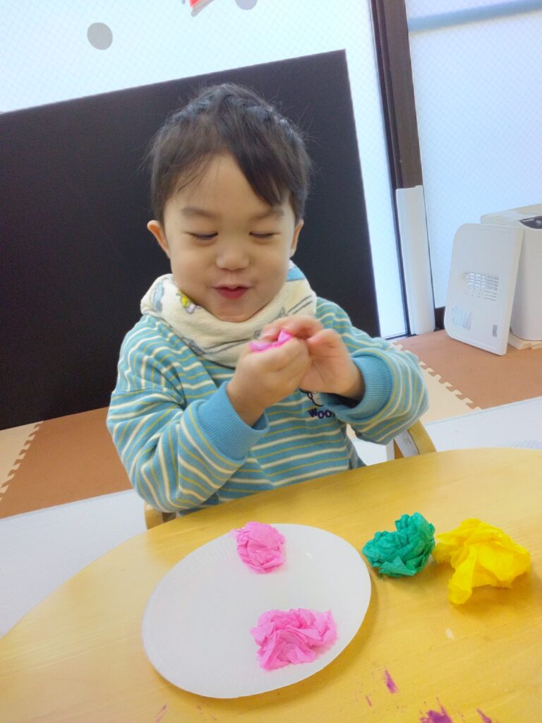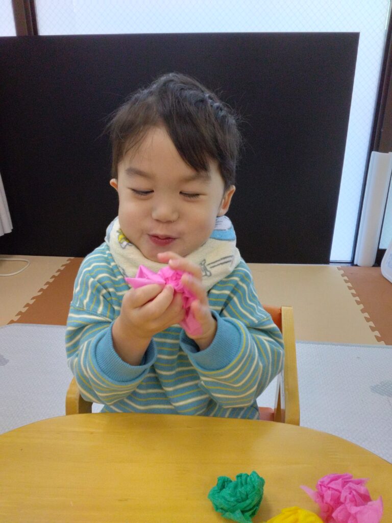 花紙がくしゃくしゃなる音を感じたり花紙を丸める感触を感じたり💭