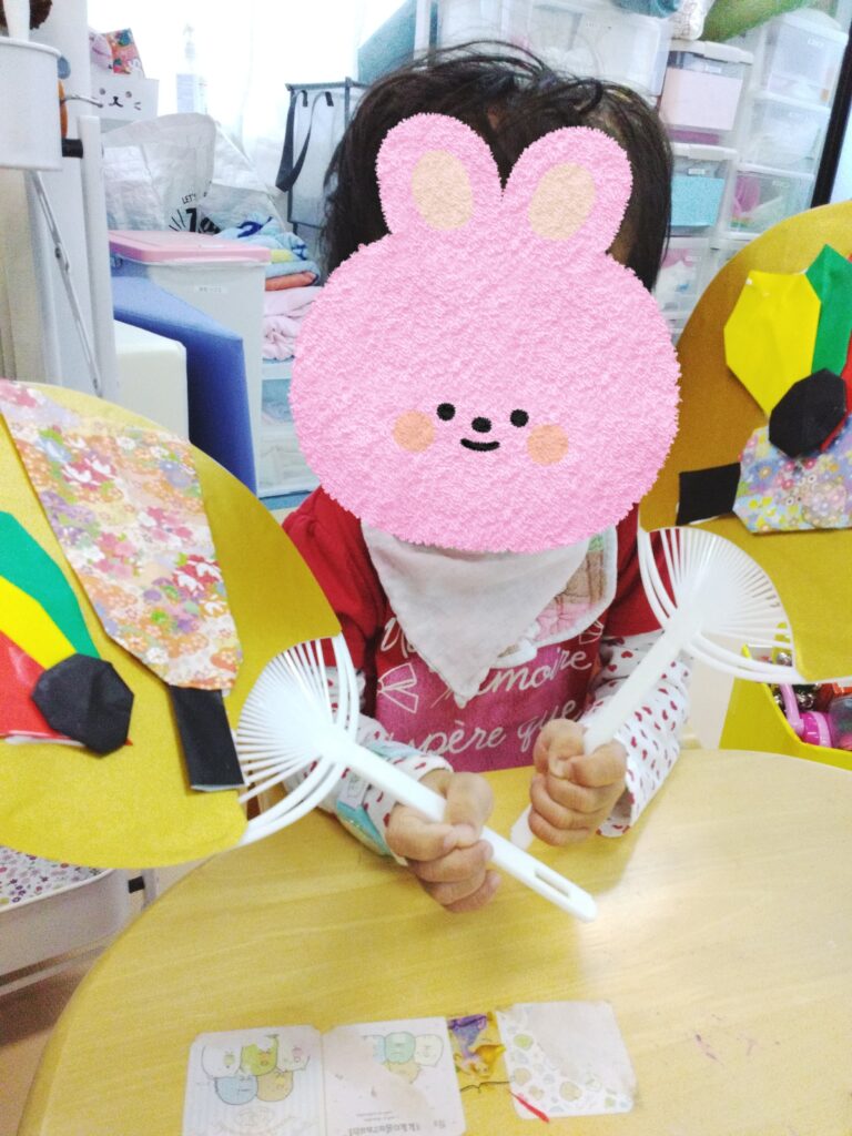 うちわで製作した羽子板と風船を使ってみんなで「羽子板遊び🎍」をしました😋🎍✨🎈