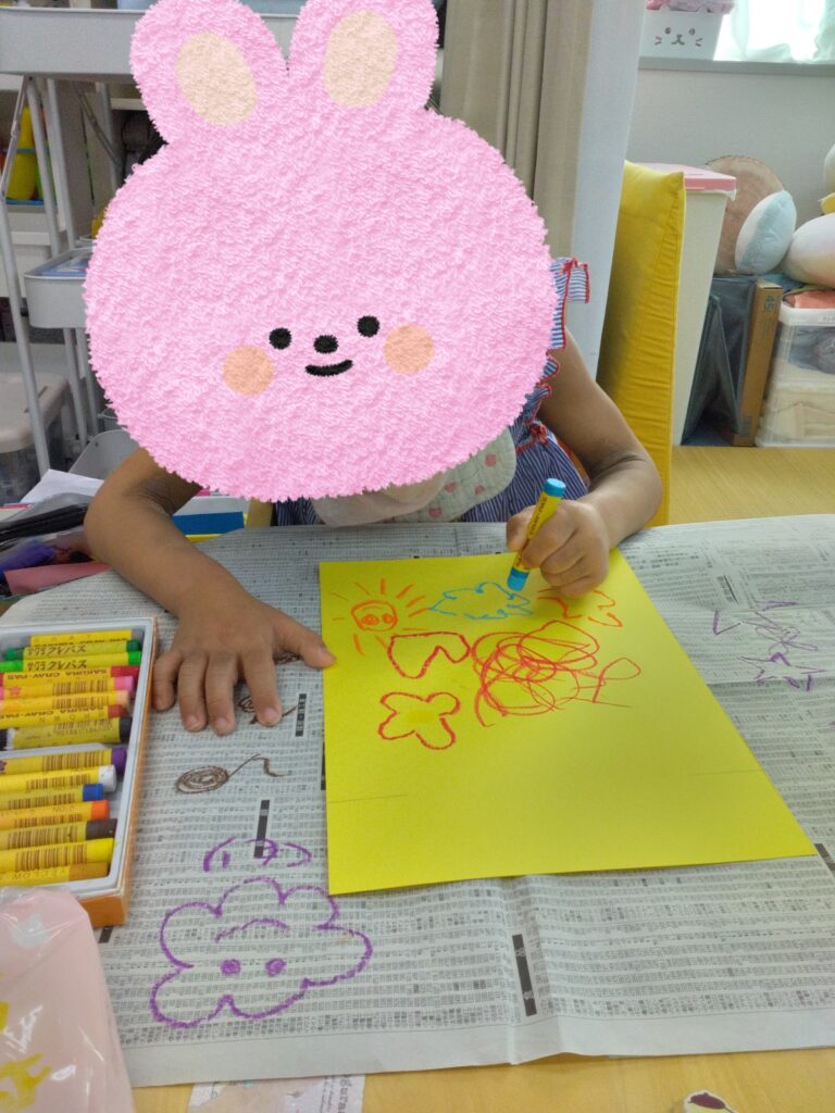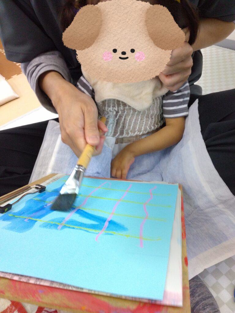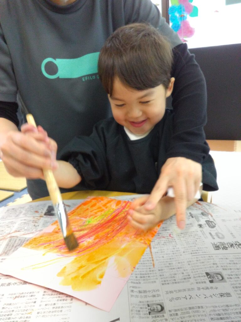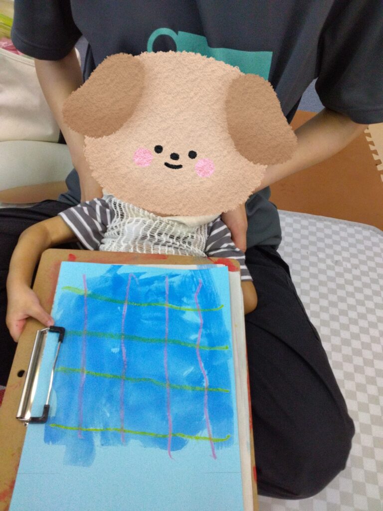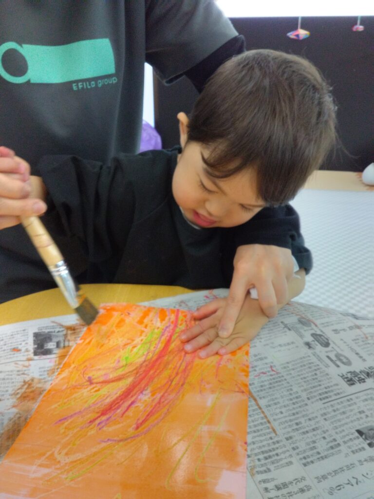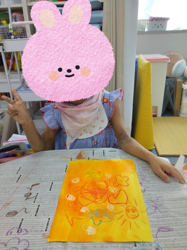 上から絵の具を塗ると・・・クレヨンで書いた部分がくっきりと見えて素敵なシャツの完成👕‼️