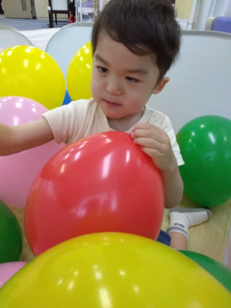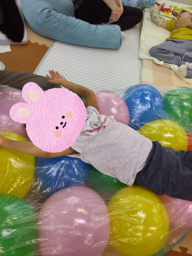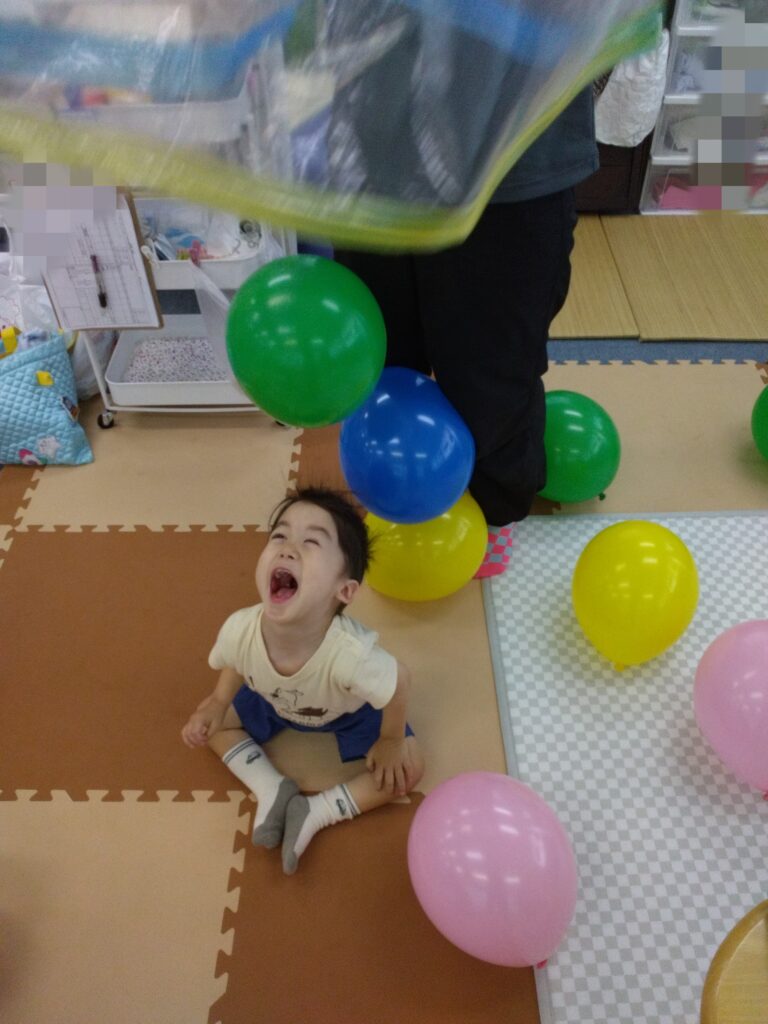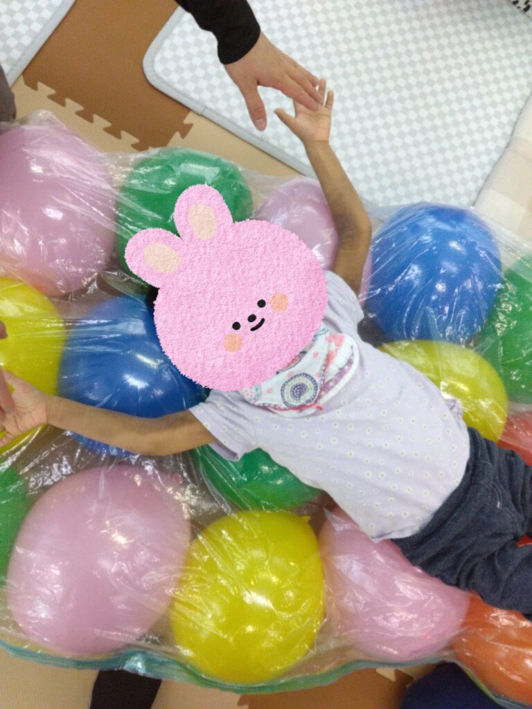 バルーンベッドに挑戦‼️するも…やっぱり風船を触ったり、上から降ってくるほうが楽しい~🎈😝