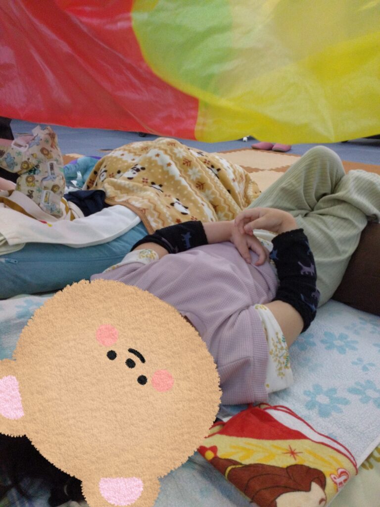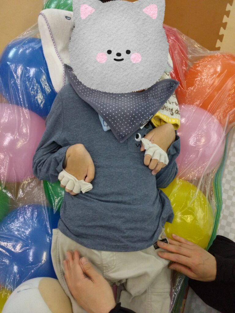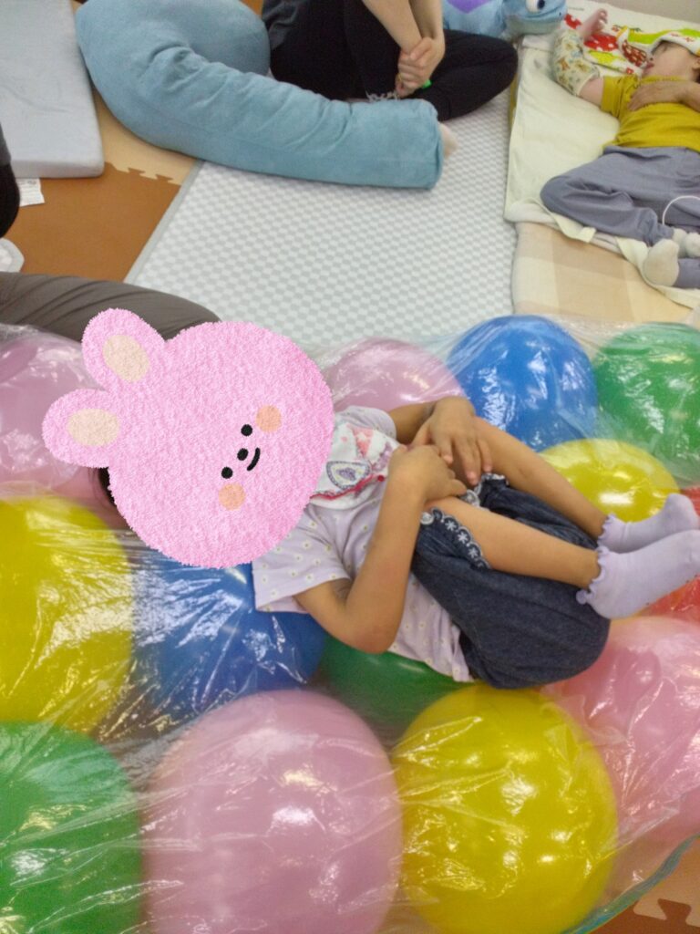 慣れてくるとバルーンベッドの上で小さくなったり、大きく手を広げたりできる子も🤭