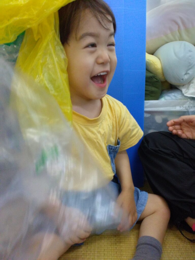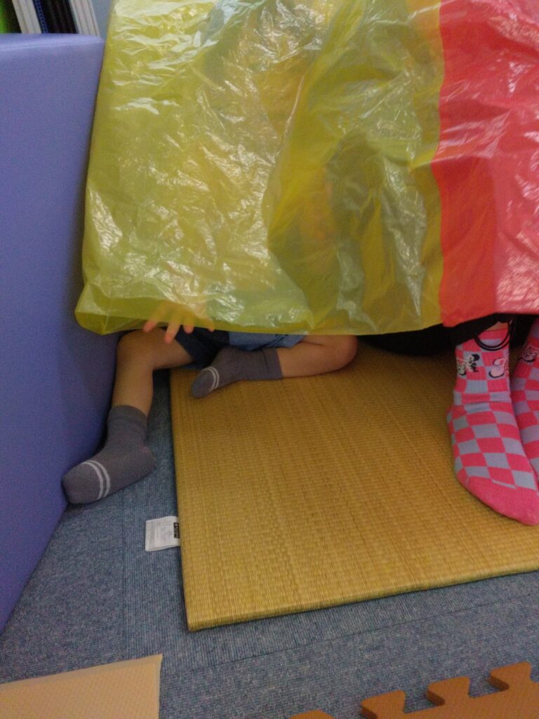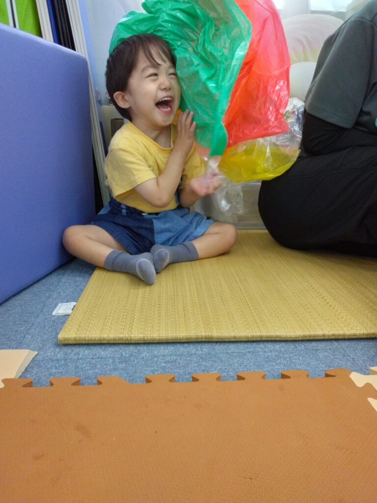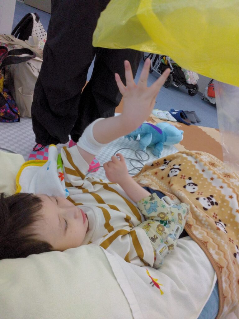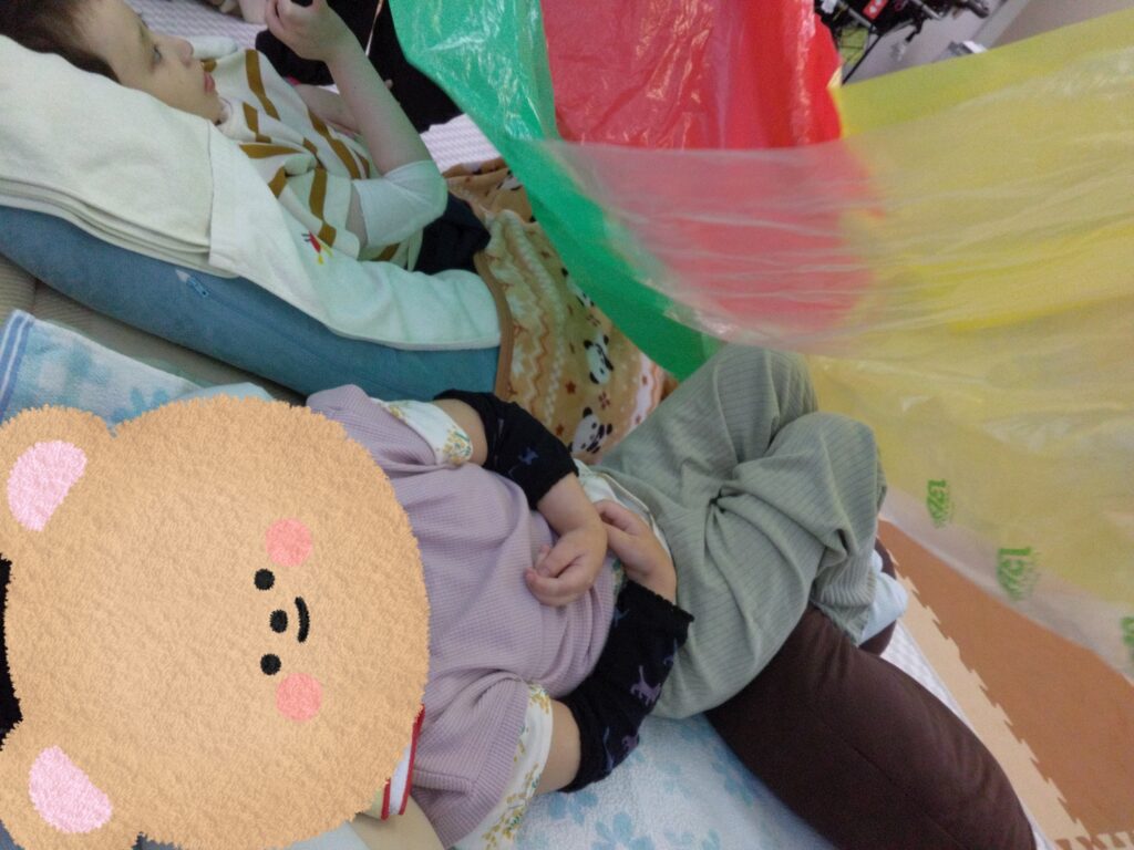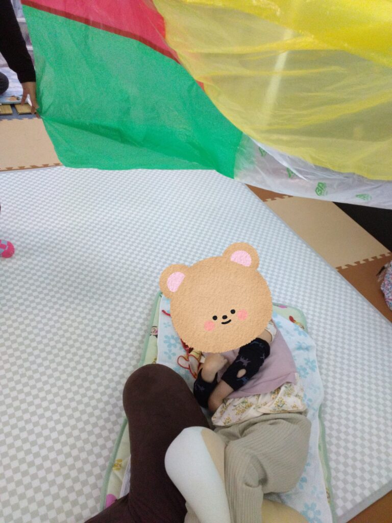 次はパラバルーン🏵️手を伸ばして触ろうとしたり、色を見て楽しんだり😄