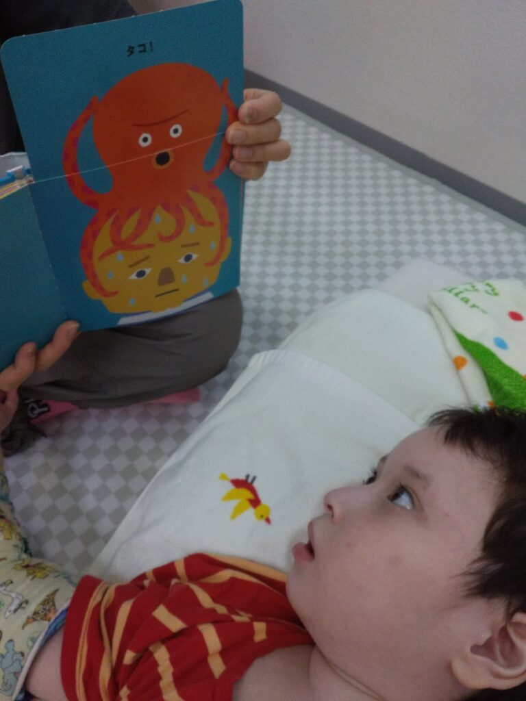 みんな絵本📚が好きでニコニコ😊としながらお話を聞いてくれたり、絵本の絵を見て✨顔真似( *´艸`)🐙😮✨をしてくれてます🤭