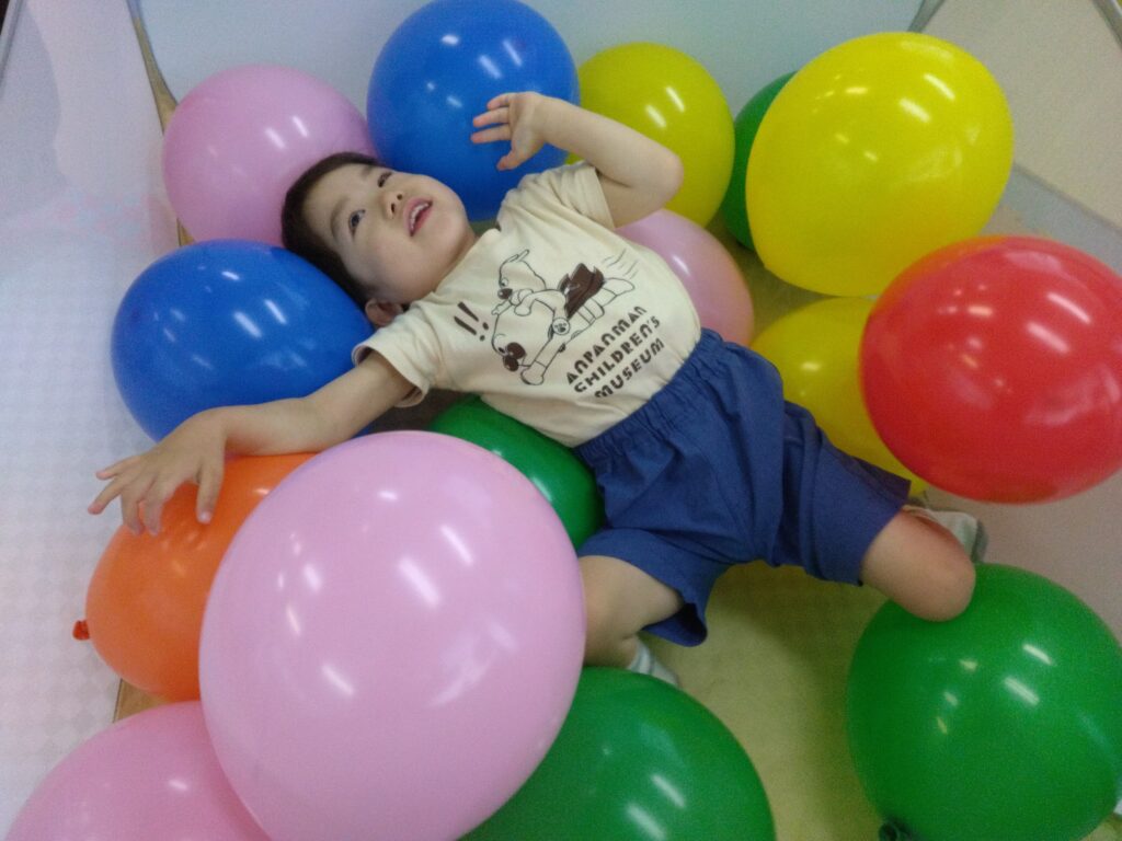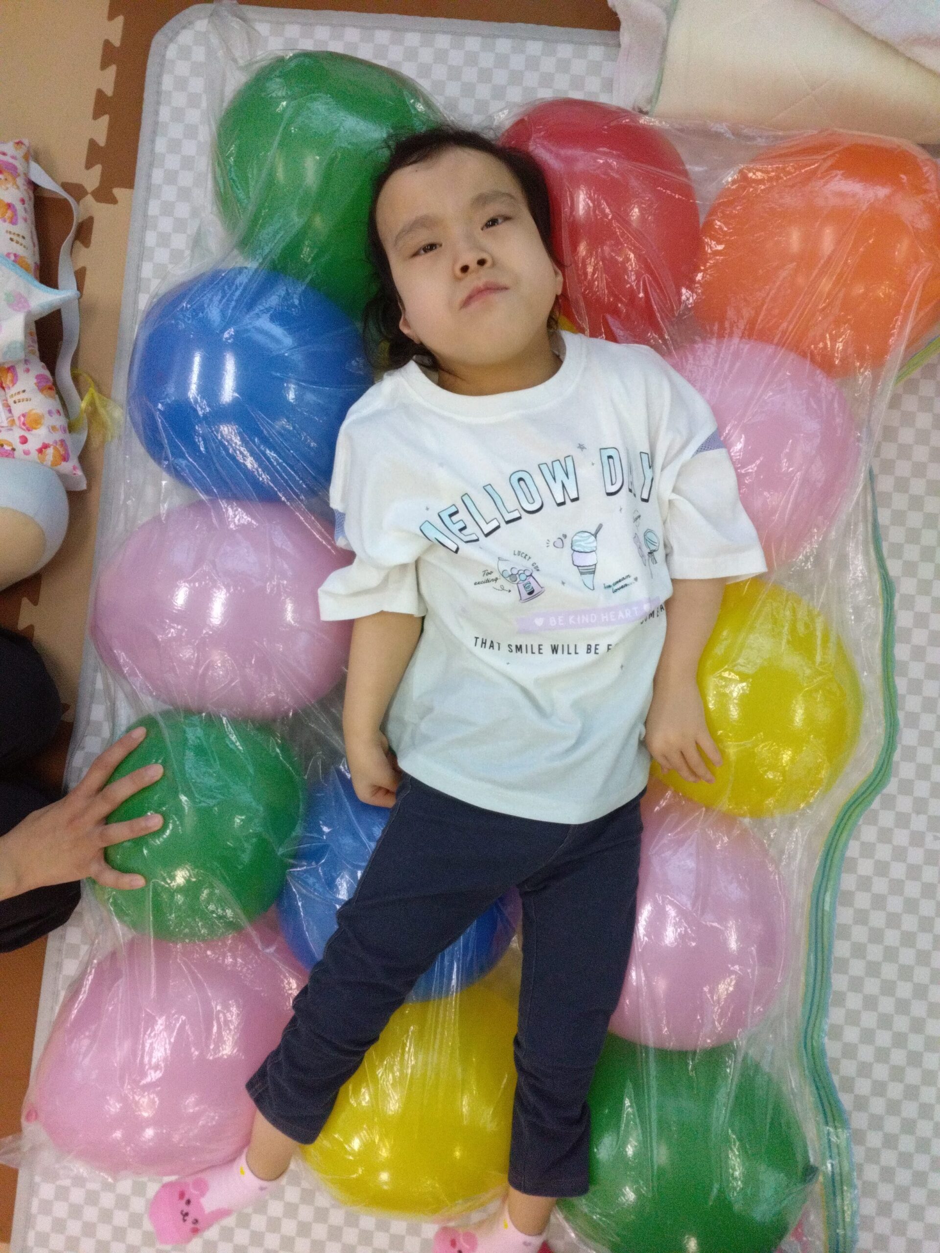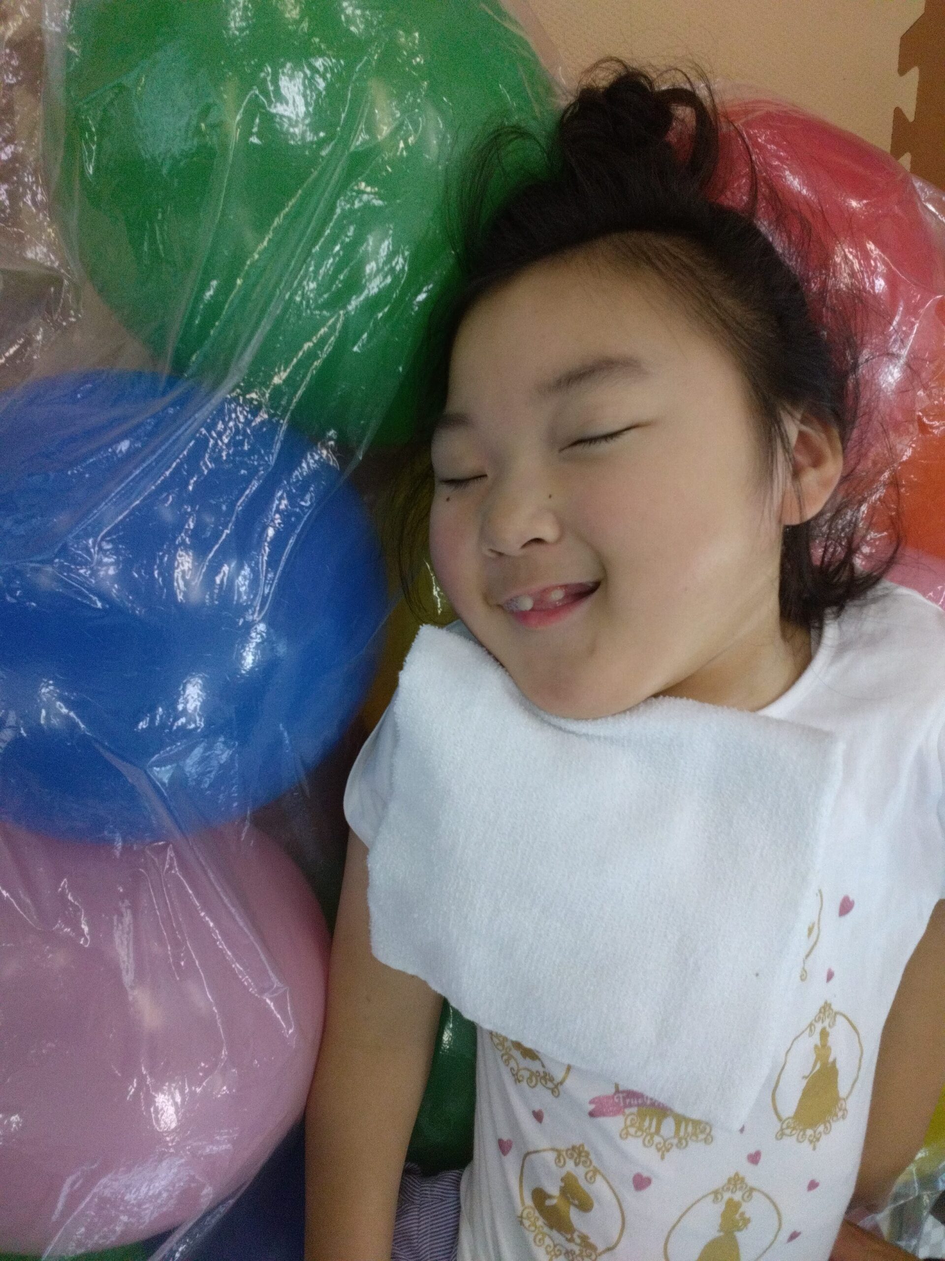 カラフルな風船の上にごろん!と横になると・・・