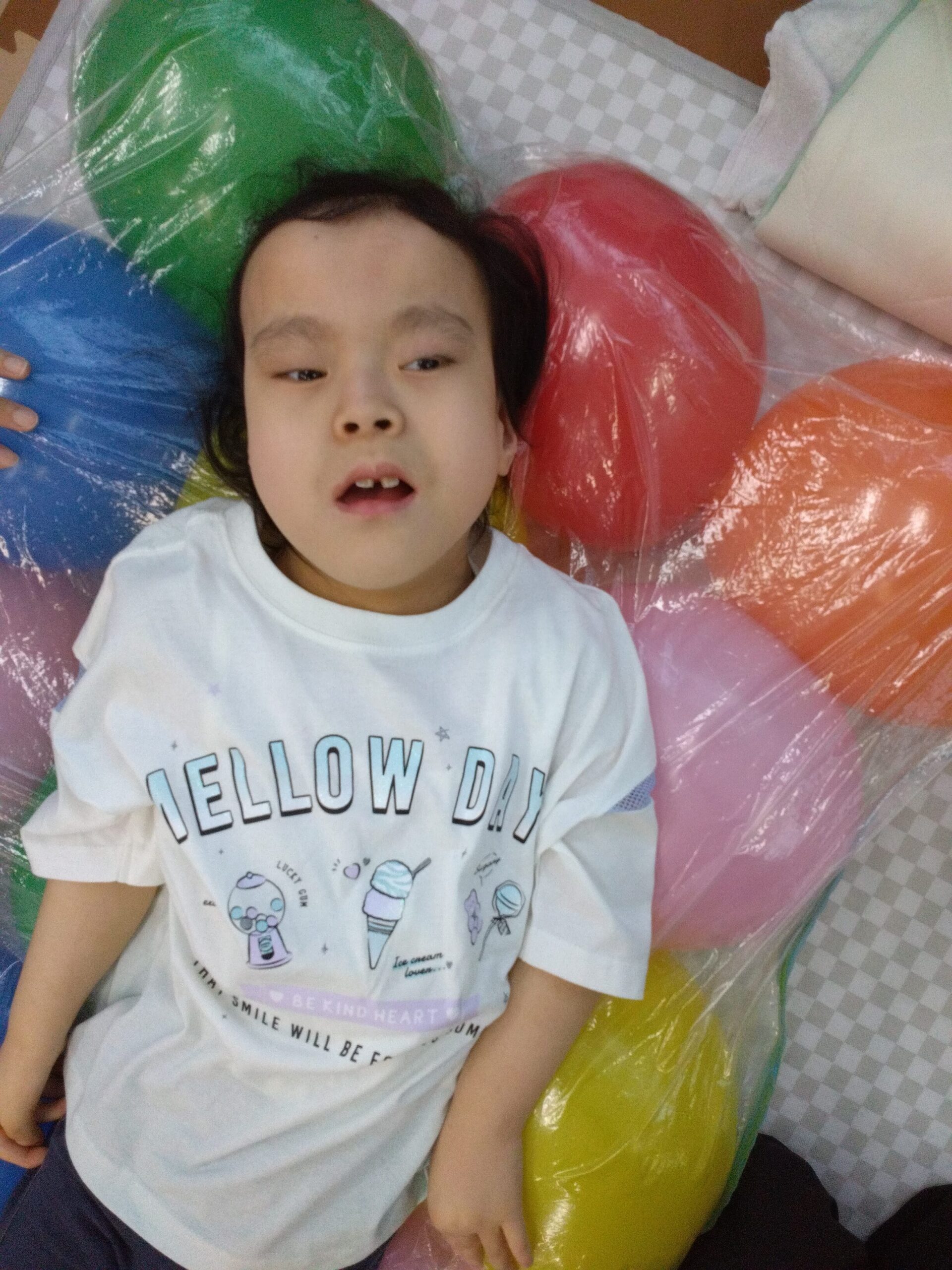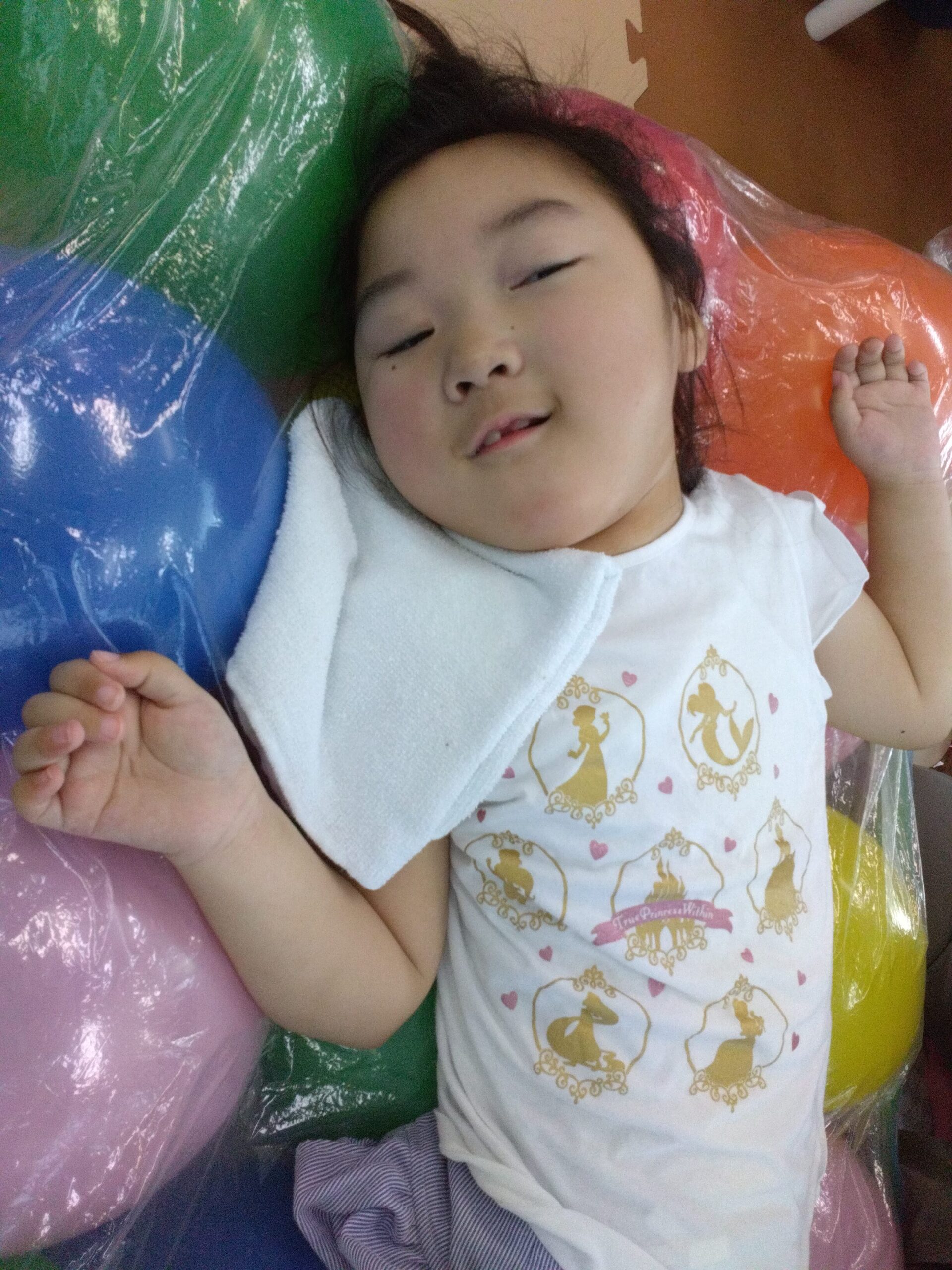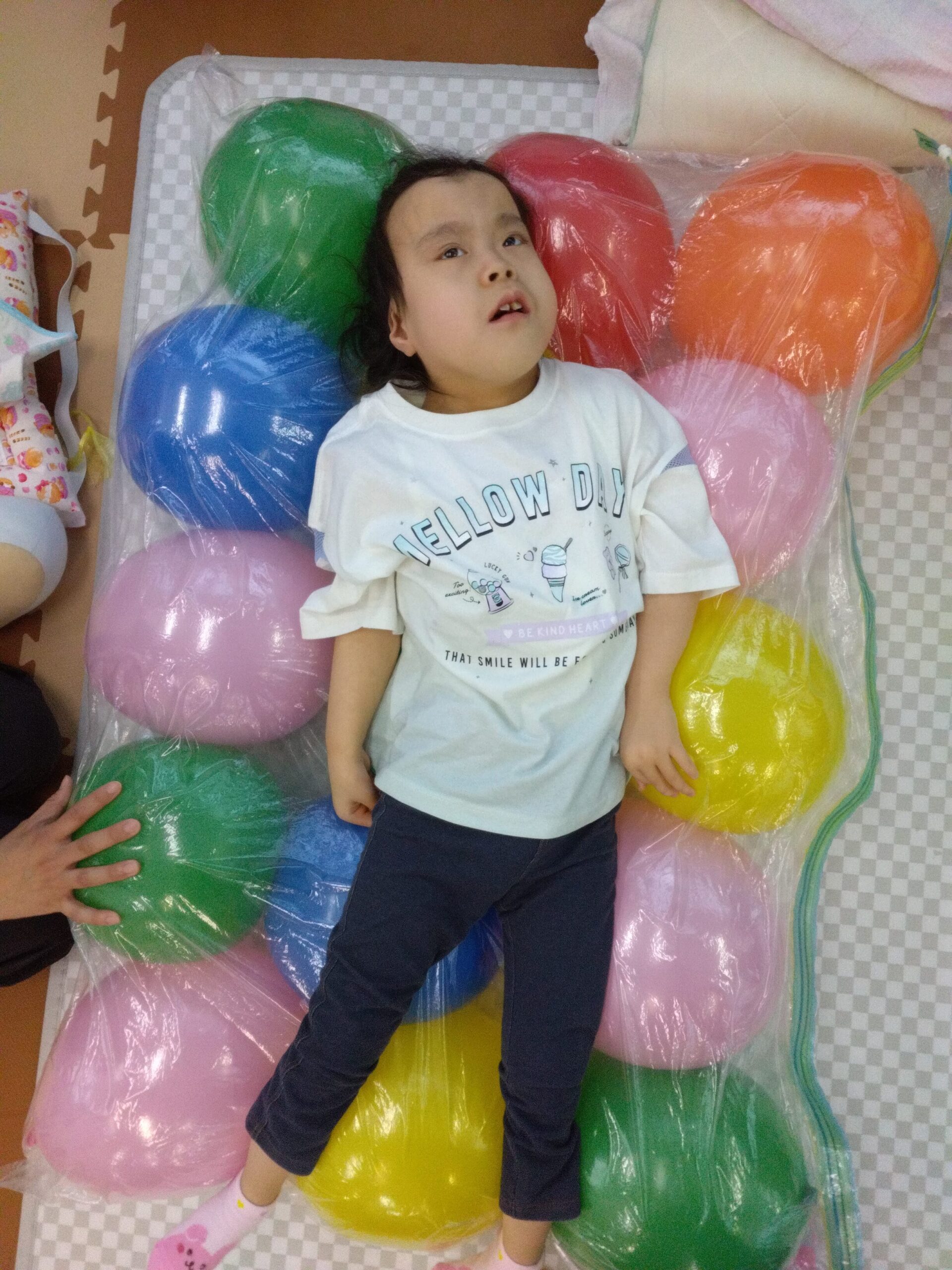 カラフルな風船の上にごろん!と横になると・・・
