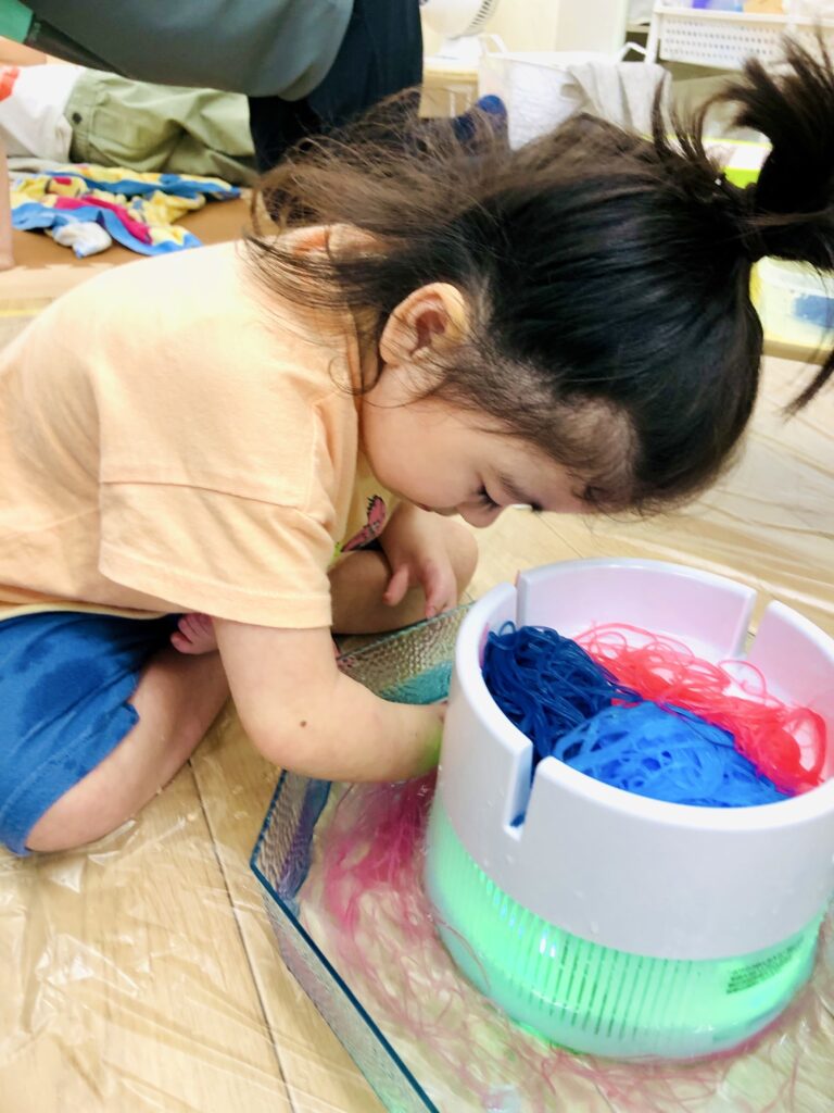 カラフルに色付けした春雨を流しそうめん器で流します😆