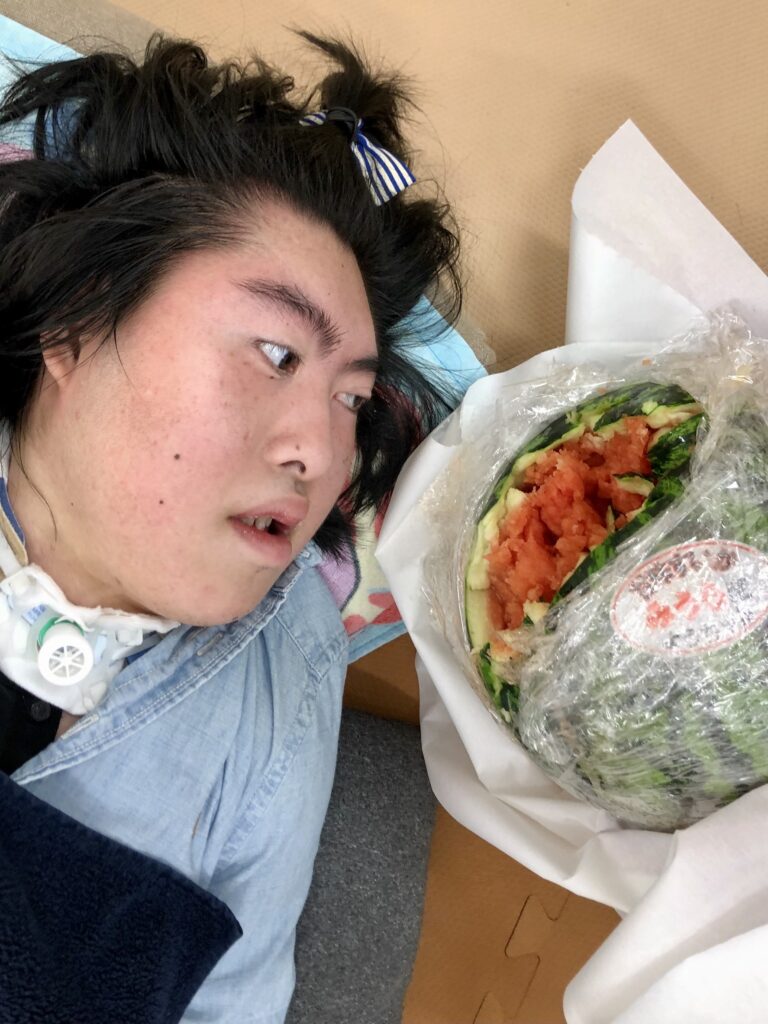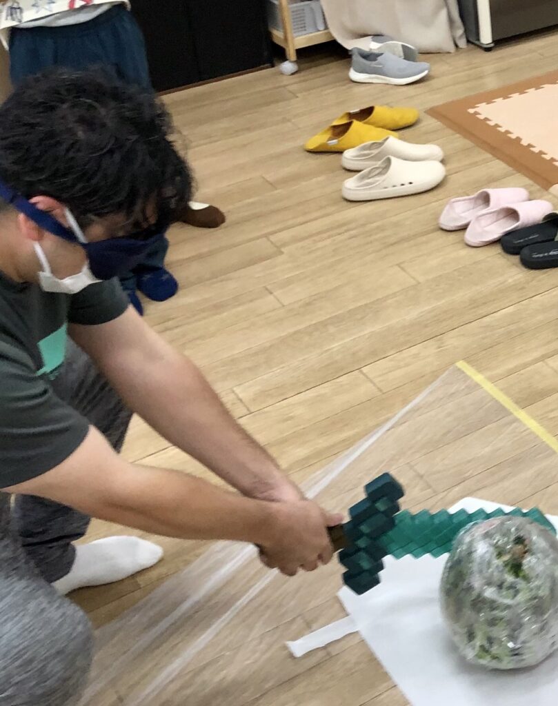 夏休みの最後に大きなスイカを割って食べました😋🍉